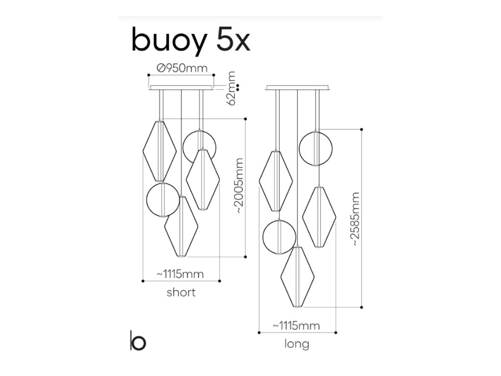 Jedná se o monturu ke svítidlům značky Bomma ze série Buoy pro kombinaci 5 svítidel.