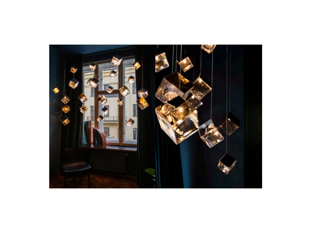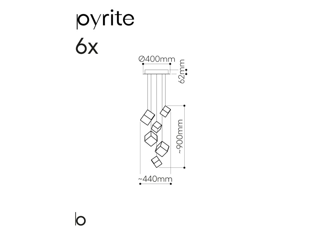 Kolekce Pyrite byla inspirována pyritem, zlatým ohnivým kamenem ve tvaru dokonalé krychle, zatímco stříbrná verze odstínu odráží jeho inspiraci v krystalech soli. Lesklý povrch této ručně foukané křišťálové kostky je ze tří stran uzavřen leštěným kovovým komponentem ve stříbrném nebo zlatém odstínu. Svítidlo lze kombinovat do jedinečných světelných konstelací. Toto svítidlo rozzáří obývací pokoj, ložnici, pracovnu nebo i konferenční místnost. Je také perfektní volbou do společenských a reprezentativních prostor. Tento produkt se prodává ve dvou barevných variantách a dvou velikostech (large a small).