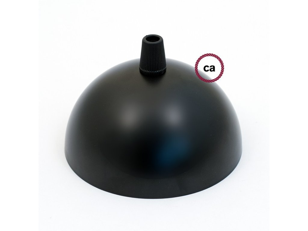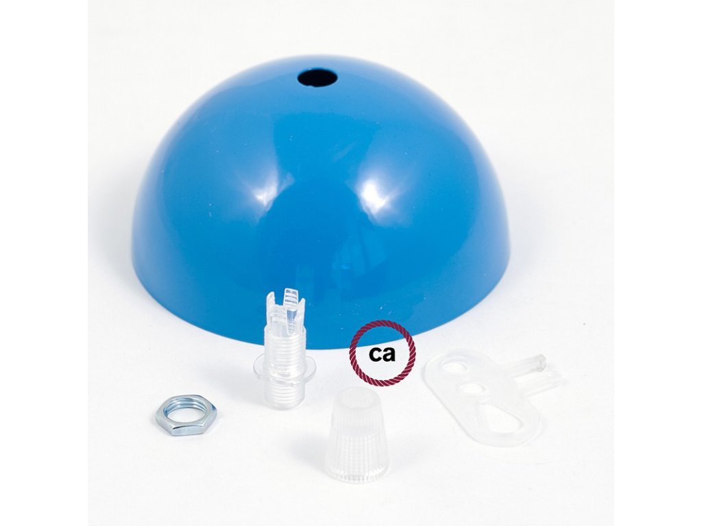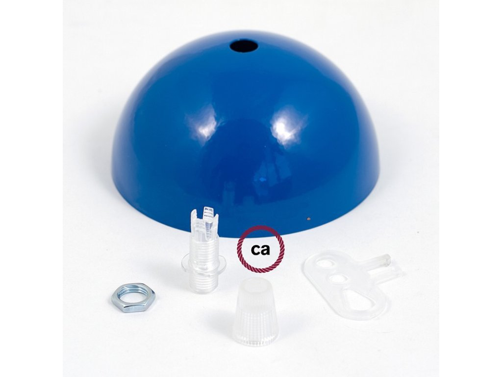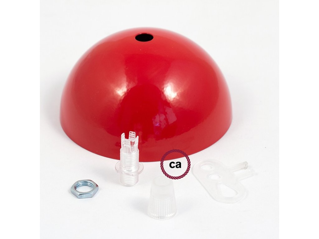 Lakovaný barevný stropní baldachýn ve tvaru polokoule s jedním otvorem je je vhodný pro nástěnné a stropní svítdidlo s jedním zdrojem světla. Lakovaný kov je odolný materiál a může se pochlubit lesklým efektem povrchu