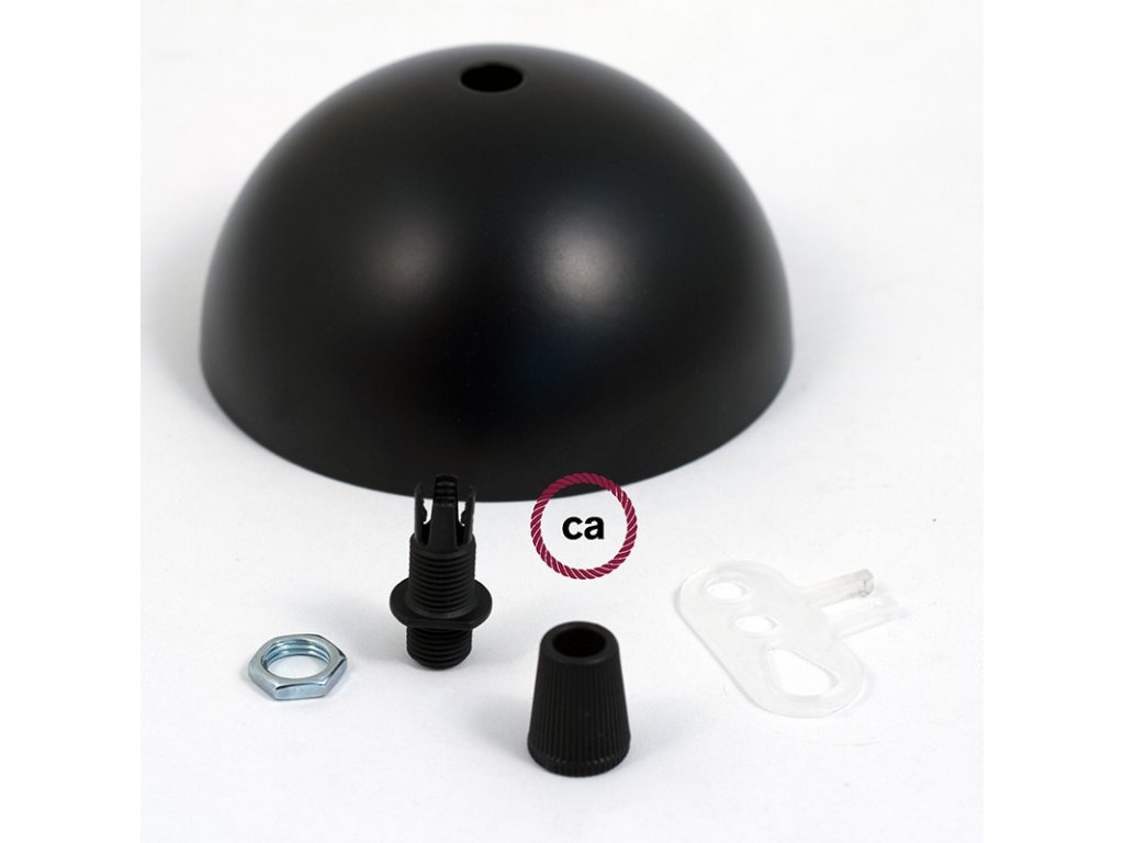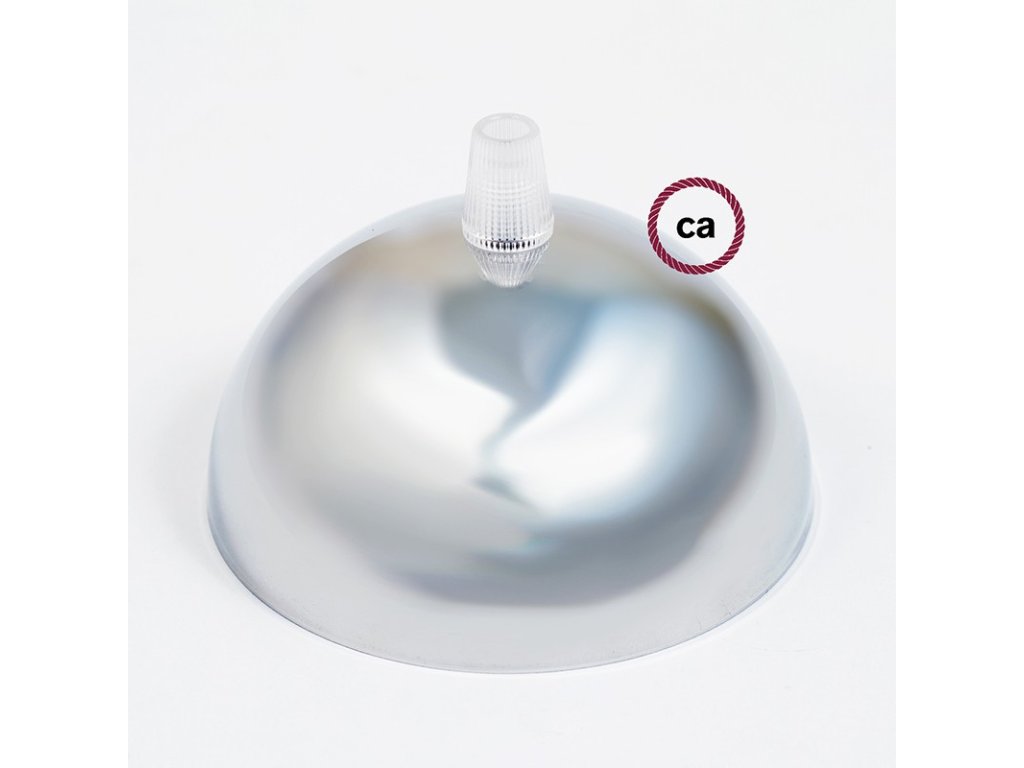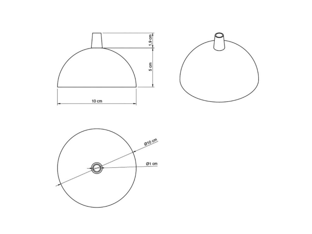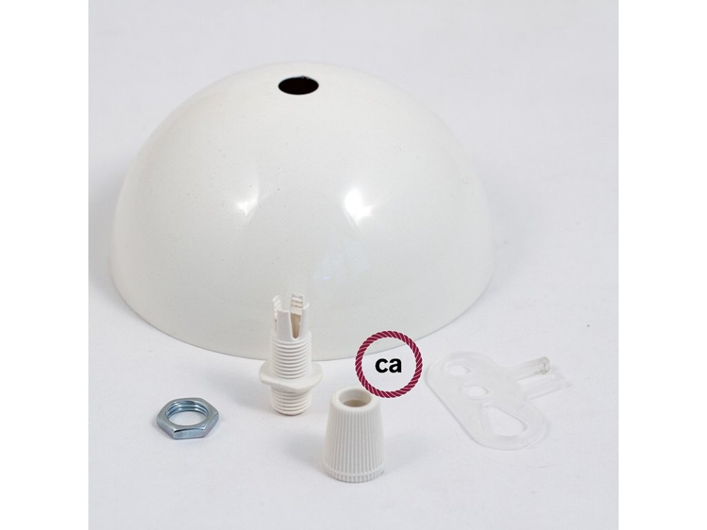 Lakovaný barevný stropní baldachýn ve tvaru polokoule s jedním otvorem je je vhodný pro nástěnné a stropní svítdidlo s jedním zdrojem světla. Lakovaný kov je odolný materiál a může se pochlubit lesklým efektem povrchu