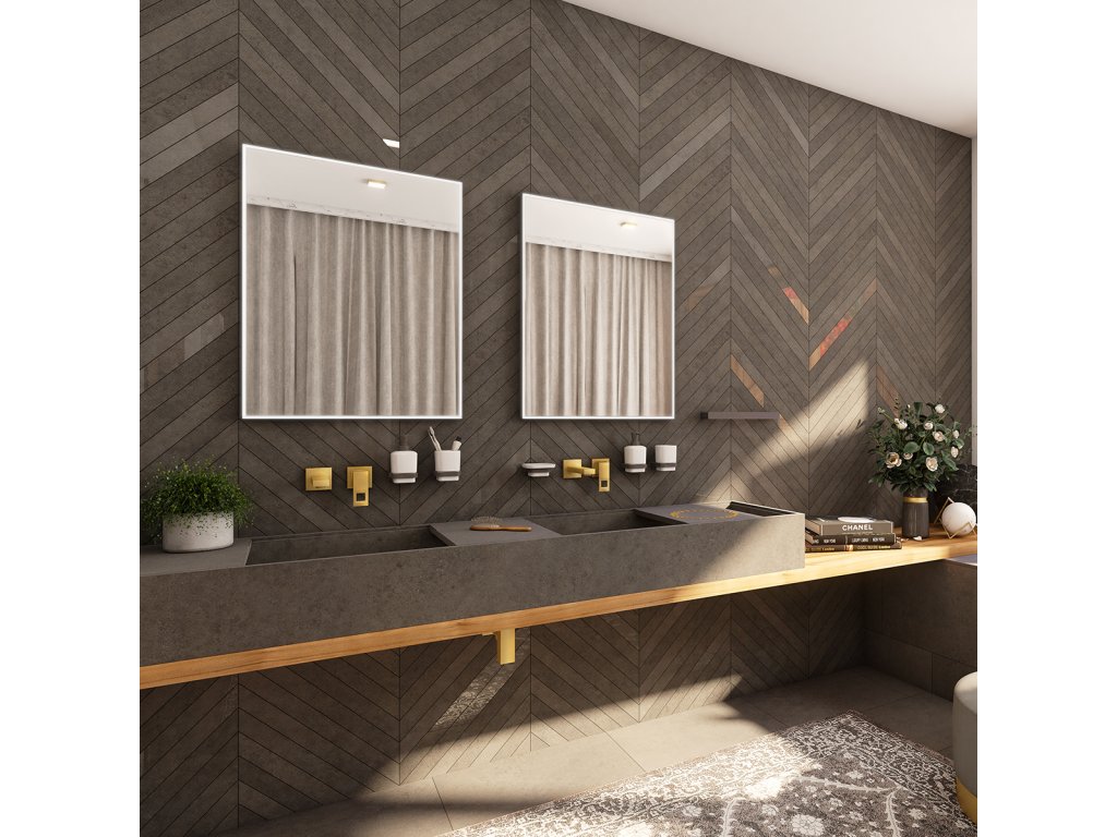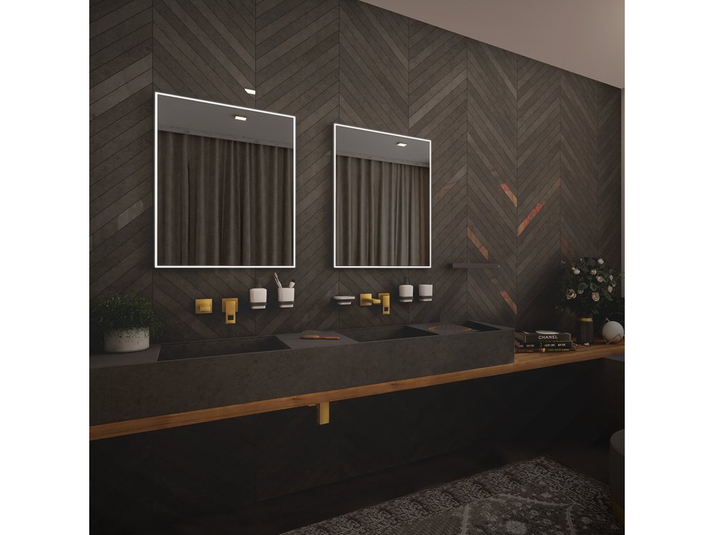 Obdélníkové zrcadlo s rámem s ostrými rohy a celoobvodovým svícením pro dokonalé a rovnoměrné osvětlení. Zrcadlo bez integrovaného vypínače je určené k připojení a ovládání nástěnným vypínačem. Barva světla zrcadla je pevně nastavena. Pro dosažení kvalitního a rovnoměrného svícení je použit akrylový difuzor, který zajišťuje měkký a harmonický rozptyl světla bez viditelných bodových zdrojů.