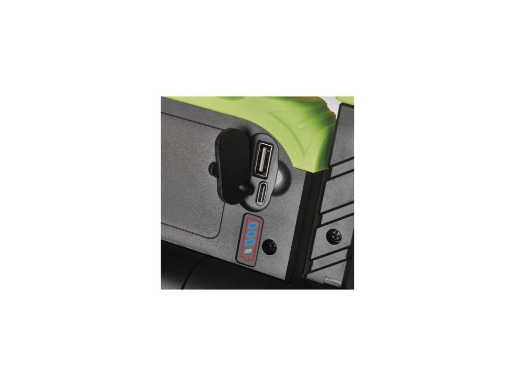 barva: černo-zelená|baterie součástí balení: ano|doba nabíjení: 7 h|doba svícení: 3,5–14,5 h|doba svícení detail: 2× COB LED 100 % – 3,5 h, 2× COB LED 50 % – 5,5 h, 1× COB LED 100 % – 5,5 h, 1× COB LED 50 % – 8,5 h, 1× COB LED 25 % – 14,5 h|dosvit: 2× COB LED 100 % – 70 m, 2× COB LED 50 % – 45 m, 1× COB LED 100 % – 45 m, 1× COB LED 50 % – 35 m, 1× COB LED 25 % – 25 m|fokus: ne|hmotnost: 818 g|LED indikace nabíjení: ano|LED indikace stavu akumulátoru: ano|materiál: ABS plast + guma|maximální dosvit: 70 m|maximální světelný tok: 2 000 lm|nabíjecí: ano|napájení: Li-Ion akupack|nárazuvzdornost: ano|počet režimů svícení: 5|příslušenství: USB kabel|prodejní obal: 1 ks, krabice|režimy svícení: 2× COB LED 100 %, 2× COB LED 50 %, 1× COB LED 100 %, 1× COB LED 50 %, 1× COB LED 25 %|rozměr: 214 × 140 (280) × 56 mm|speciální funkce: funkce rychlého vypnutí, funkce ochrany baterie|světelný tok: 2× COB LED 100 % – 2 000 lm, 2× COB LED 50 % – 1 000 lm, 1× COB LED 100 % – 1 000 lm, 1× COB LED 50 % – 500 lm, 1× COB LED 25 % – 250 lm|typ baterie: 8 000 mAh/3,7 V|typ napájecího konektoru: USB C|voděodolnost: ne|vybavení: otočná rukojeť, 4× magnet|záruční doba: 2 roky|zdroj světla: 2× COB LED|značka: EMOSDoplňkové parametry