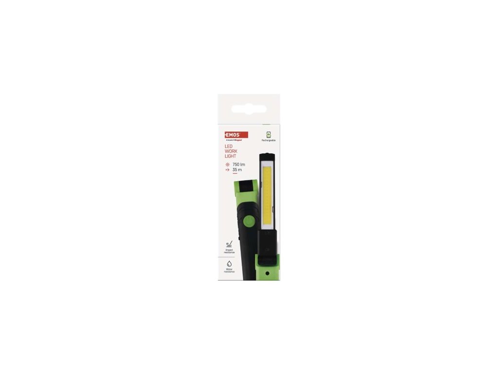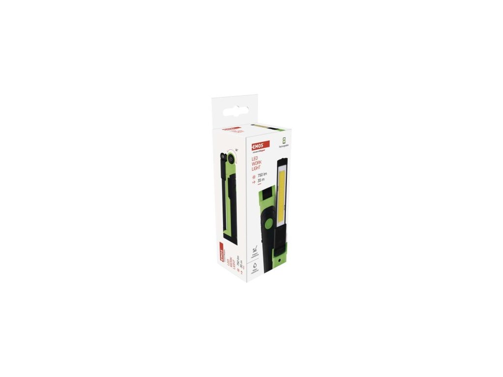 barva: zeleno-černá|baterie součástí balení: ano|doba nabíjení: 2,5 h|doba svícení: 2–13 h|doba svícení detail: COB LED 100 % – 2 h, COB LED 40 % – 2,5 h, COB LED 20 % – 4 h, SMD LED 100 % – 13 h|dosvit: COB LED 100 % – 35 m, COB LED 40 % – 25 m, COB LED 20 % – 15 m, SMD LED 100 % – 20 m|fokus: ne|hmotnost: 118 g|LED indikace nabíjení: ano|LED indikace stavu akumulátoru: ne|materiál: plast|maximální dosvit: 35 m|maximální světelný tok: 750 lm|nabíjecí: ano|napájení: Li-Ion|nárazuvzdornost: ano|počet režimů svícení: 6|příslušenství: USB kabel|prodejní obal: 1 ks, krabice|režimy svícení: COB LED 100 %, COB LED 40 %, COB LED 20 %, červené COB LED svícení, červené COB LED blikání, SMD LED 100 %|rozměr: 28 × 35 × 147/285 mm|speciální funkce: funkce rychlého vypnutí, funkce ochrany baterie|světelný tok: COB LED 100 % – 750 lm, COB LED 40 % – 300 lm, COB LED 20 % – 150 lm, SMD LED 100 % – 100 lm|typ baterie: 2 000 mAh/3,7 V|typ napájecího konektoru: USB C|voděodolnost: ano (IP44)|vybavení: otočný reflektor, magnet, hák|záruční doba: 2 roky|zdroj světla: COB LED + SMD LED|značka: EMOSParametry produktu: