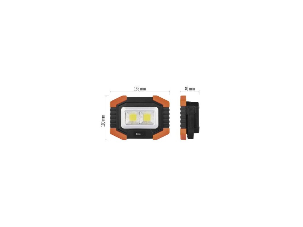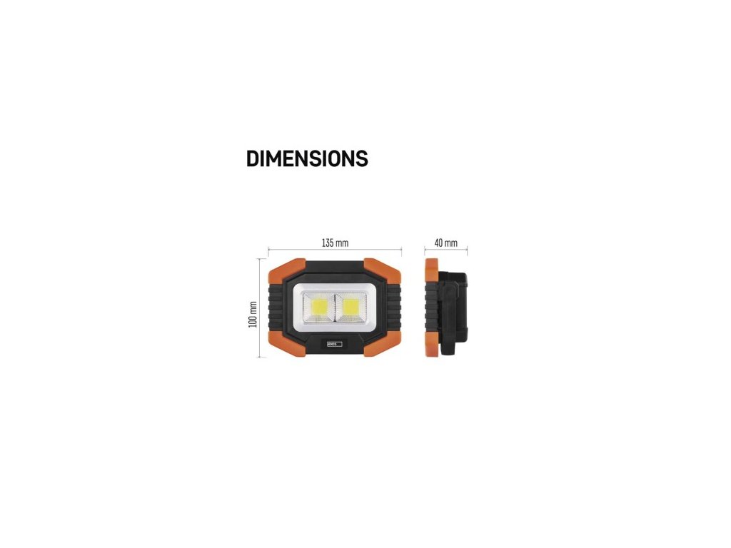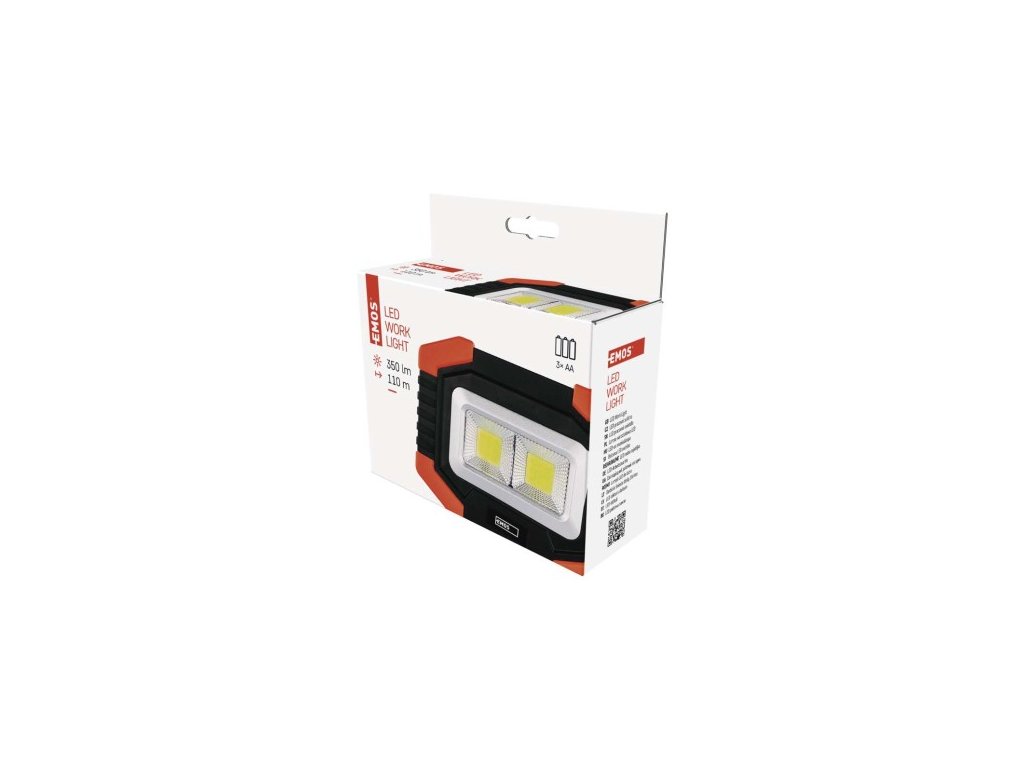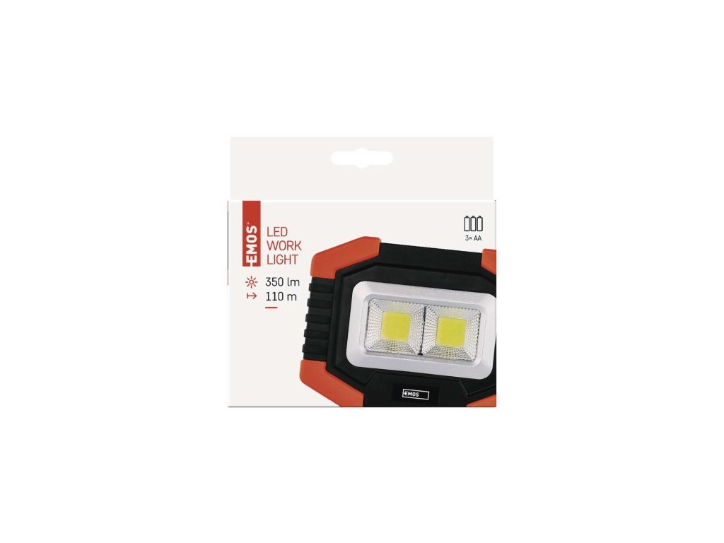 barva: černo-oranžová|baterie součástí balení: ne|doba nabíjení: neuvádí se|doba svícení: 10–20 h|doba svícení detail: 2× COB LED 100 % – 10 h, LED 100 % – 20 h|dosvit: 2× COB LED 100 % – 30 m, LED 100 % – 110 m|fokus: ne|hmotnost: 140 g|LED indikace nabíjení: neuvádí se|LED indikace stavu akumulátoru: neuvádí se|materiál: plast|maximální dosvit: 110 m|maximální světelný tok: 350 lm|nabíjecí: ne|napájení: 3× AA|nárazuvzdornost: neuvádí se|počet režimů svícení: 2|příslušenství: neuvádí se|prodejní obal: 1 ks, papírová krabička|režimy svícení: 2× COB LED 100 %, LED 100 %|rozměr: 135 × 100 × 40 mm|speciální funkce: neuvádí se|světelný tok: 2× COB LED 100 % – 350 lm, LED 100 % – 120 lm|typ baterie: LR6 (1,5 V)|typ napájecího konektoru: neuvádí se|voděodolnost: ne|vybavení: otočná rukojeť|záruční doba: 2 roky|zdroj světla: 2× COB LED + LED|značka: EMOSParametry produktu: