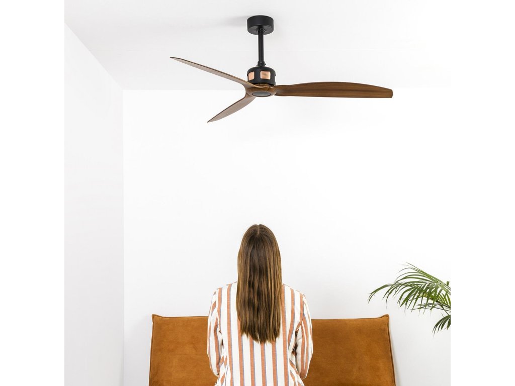 COPPER FAN M, černá/dřevo, stropní ventilátor - FARO