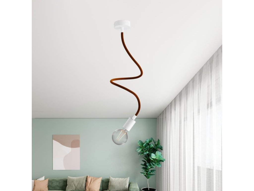 A žili flexibilně až do smrti. FLEX je ohebná trubice potažená hnědou textilií a je ideální pro vytváření jednoduchých svítidel i lustru s více světly, které jsou inspirované nejodvážnějšími nápady, těmi vašimi. Buďte kreativní a navrhněte si svůj vlastní systém osvětlení. Se systémem FLEX, nastavitelnou ohebnou trubicí s koncovou svorkou, která je k dispozici v 5 povrchových úpravách (matná bílá, černá, matná bronzová, matná měděná a matná chromovaná), můžete svůj osvětlovací systém měnit, jak a kdy chcete. Popusťte uzdu své fantazii a vytvořte ty nejkrásnější lampy s FLEX To je flexibilita! Trubice FLEX je dostupná ve třech délkách (30 cm, 60 cm a 90 cm) a s kovovými koncovými svorkami v pěti povrchových úpravách ((matná bílá, černá, matná bronzová, matná měděná a matná chromovaná).