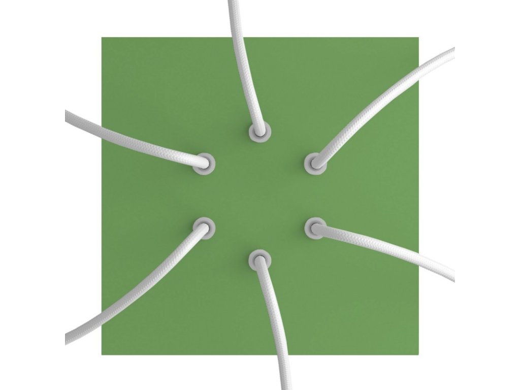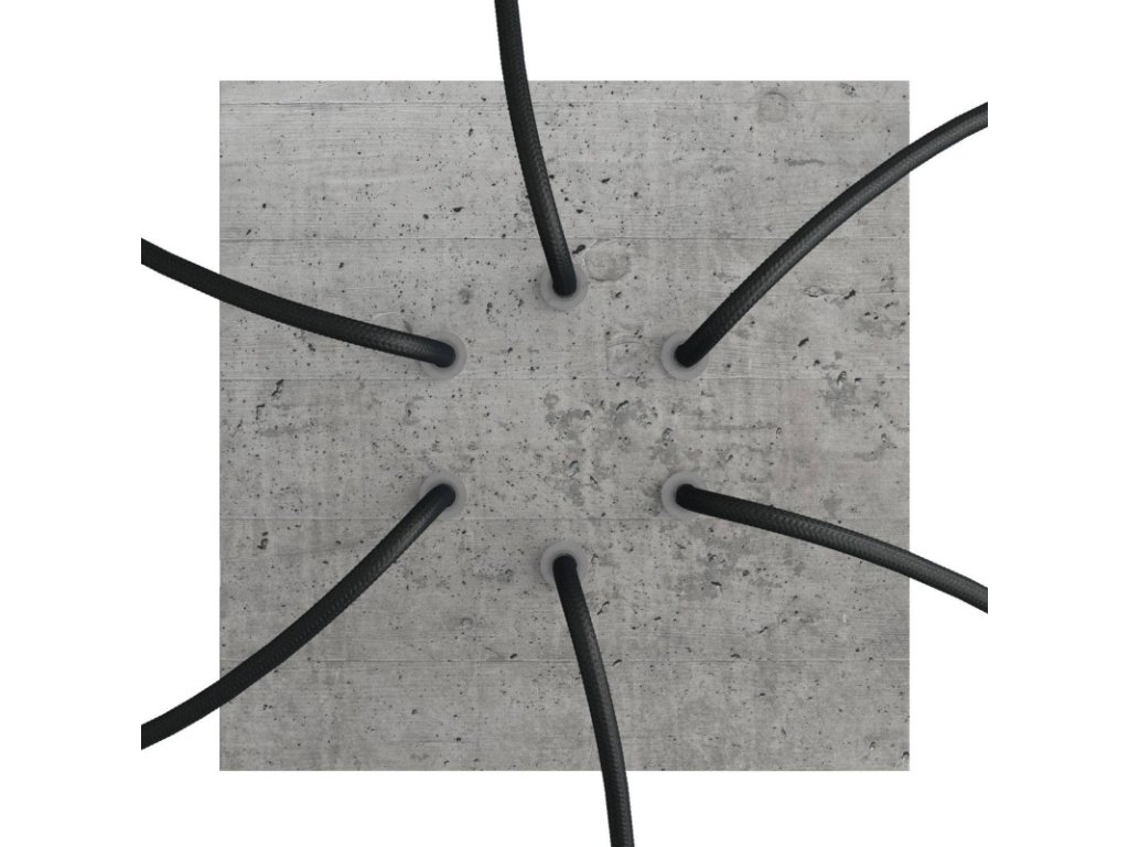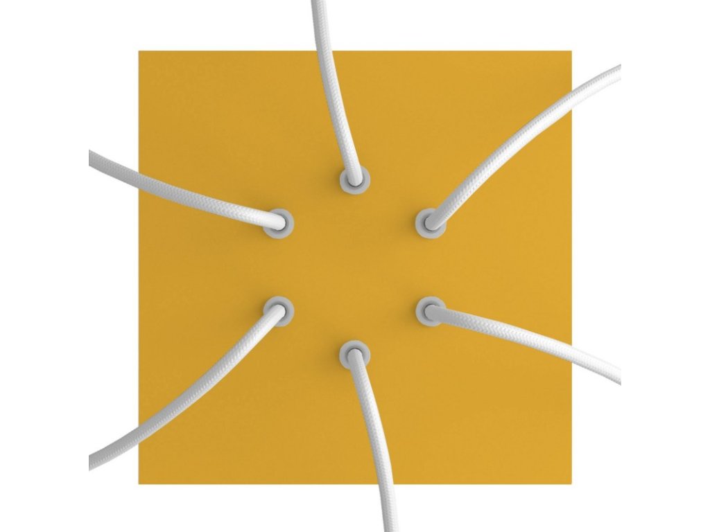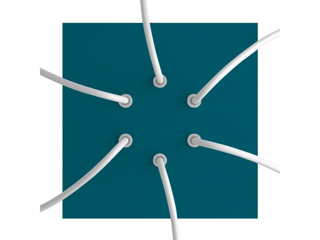 Čtvercový stropní baldachýn z edice Rose-One System představuje exkluzivní řešení z dílny Creative-Cables, díky kterému budou Vaše svítidla vypadat ještě dokonaleji. Tento čtvercový stropní baldachýn Rose-One System s průměrem 200 mm a 6 otvory je sestaven z menšího kovového stropního baldachýnu, na který se pomocí kabelových průchodek připevní čtvercová plotna s barevným, nebo obrazovým motivem s průměrem 200 mm. Díky této jednoduché myšlence budete mít mnohem větší svobodu při realizaci vlastních světelných instalací. V nabídce si můžete vybrat hned z několika svěžích barevných motivů a vzorů, které jsme pro Vás připravili. Přejeme Vám mnoho zábavy! Čtvercový stropní baldachýn Rose-One System s délkou hrany 200 mm.