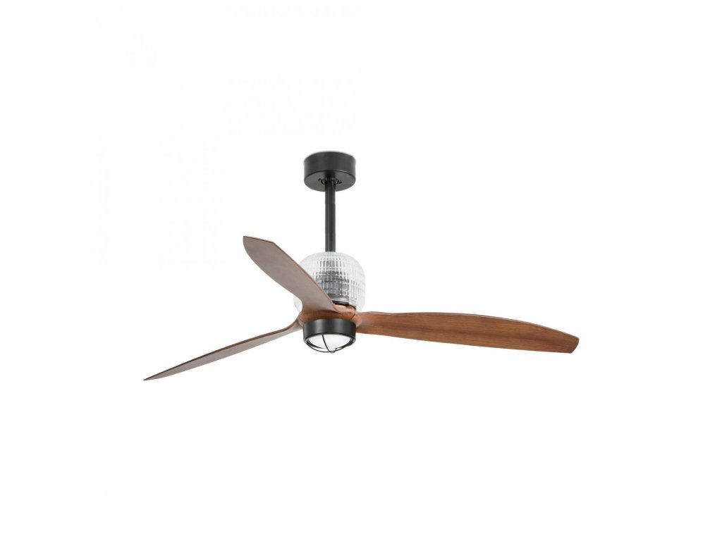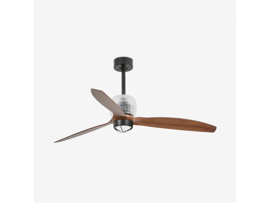 DECO FAN M LED, černá/dřevo, stropní LED ventilátor s DC motorem - FARO