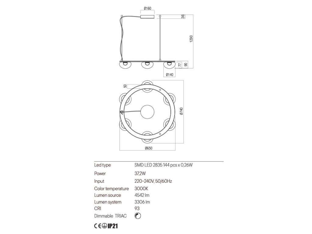 Závěsné svítidlo do interiéru vybavené LED diodami SMD, lakovaná kovová konstrukce k dispozici ve dvou barevných variantách, dvojitý difuzor ze skla PYREX, zvenku průhledný, zevnitř saténově bílý.