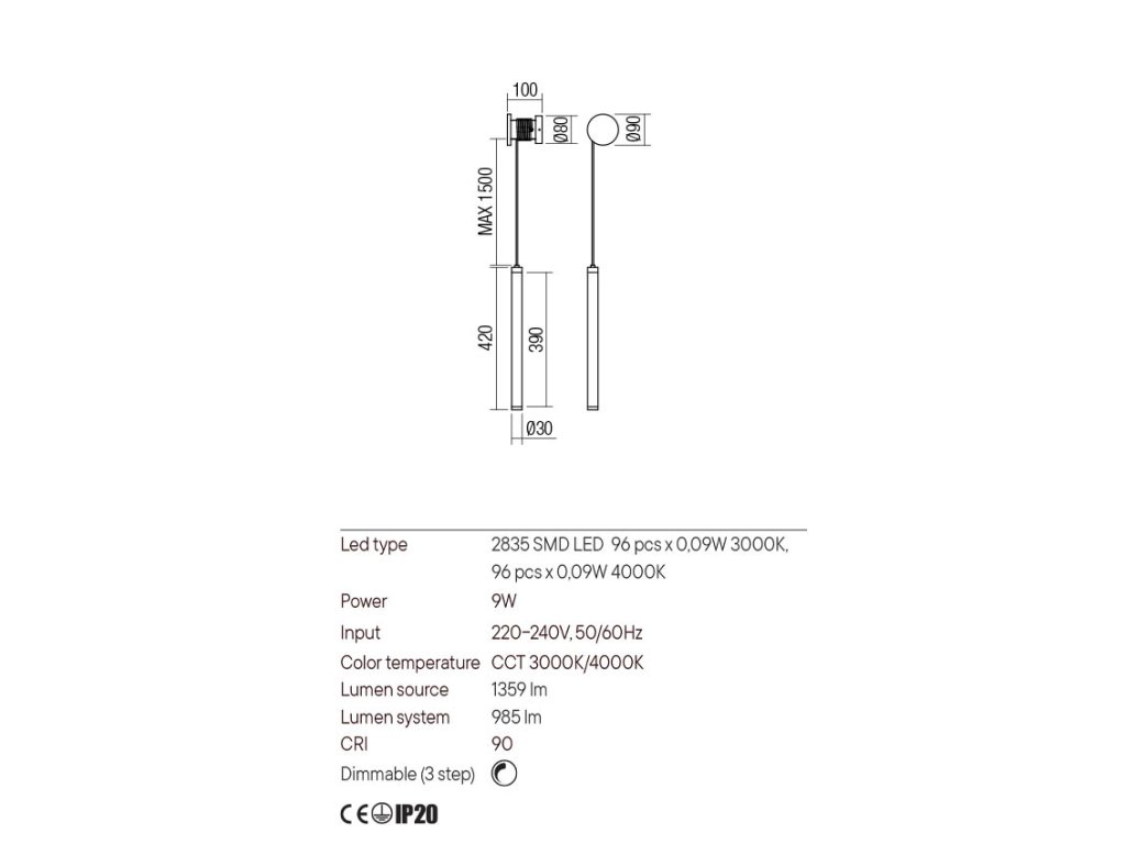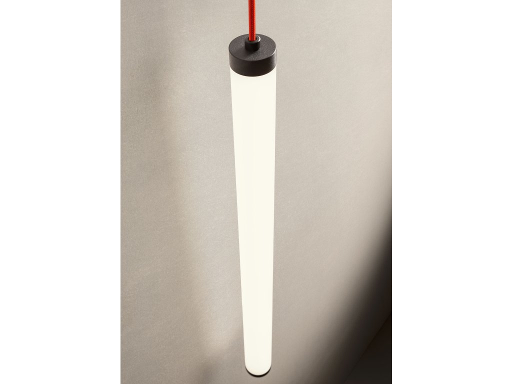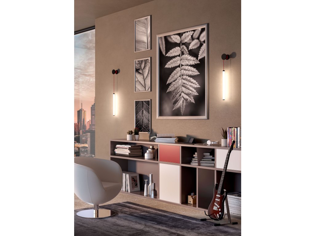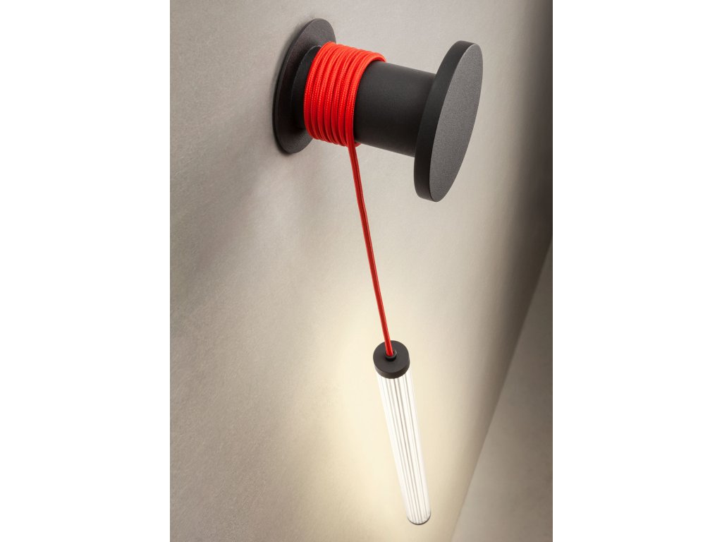 Interiérové nástěnné svítidlo vybavené LED diodami SMD s možností volby teploty barvy světla a stmívání. Hliníková a kovová lakovaná konstrukce a textilní kabel ve dvou barevných kombinacích, z vnější strany průhledný strukturovaný akrylátový difuzor s opálově bílou silikonovou trubicí uvnitř.