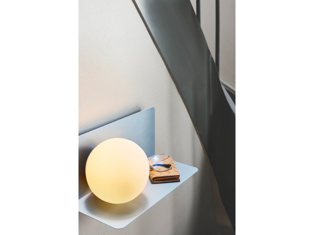 Lilibeth je lampa a police v elegantním designu. Umístěte ji vedle postele nebo do předsíně, abyste do ní mohli uložit důležité věci, jako je telefon, kniha nebo klíče. Stínidlo z opálově bílého skla zajišťuje příjemné rozptýlené světlo. Skvěle se hodí také jako noční lampička do dětského pokoje, aby se vaše ratolesti během noci cítily bezpečně.