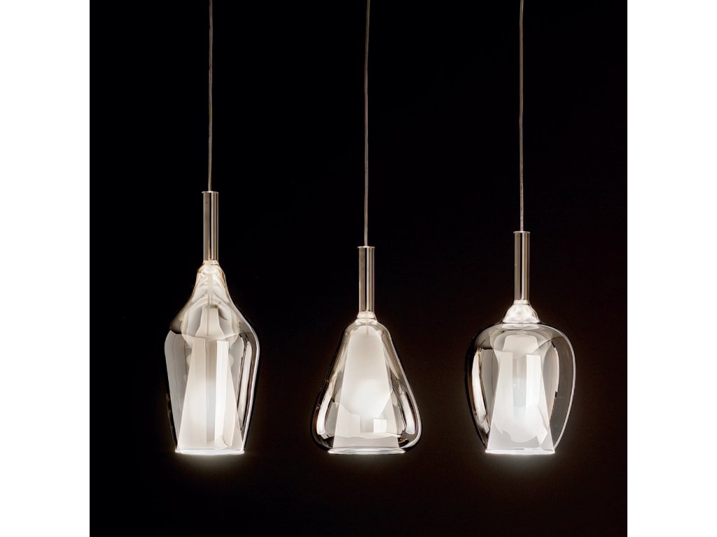 Rozsvícením se metalická kapka přemění v transparentní objekt s duhovými odlesky a přizná tak svůj křišťálový charakter. Celá kolekce je vyrobena technikou ručního foukání bez...