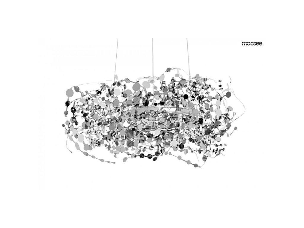 Závěsné svítidlo Clizia Large připomíná mrak, který zachycuje první měnící se paprsky ranního slunce, nebo korunu stromu filtrující hru světla a stínů.