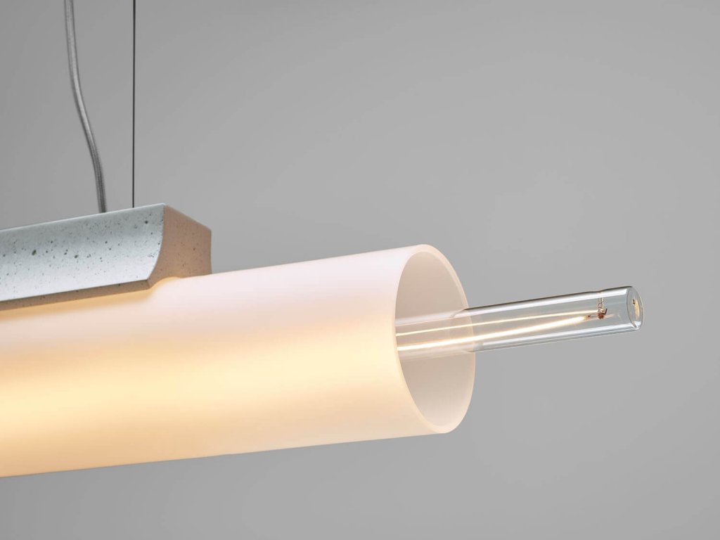- Foukané trubice v kombinaci s betonovou základnou tvoří dokonalý design