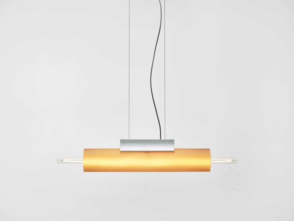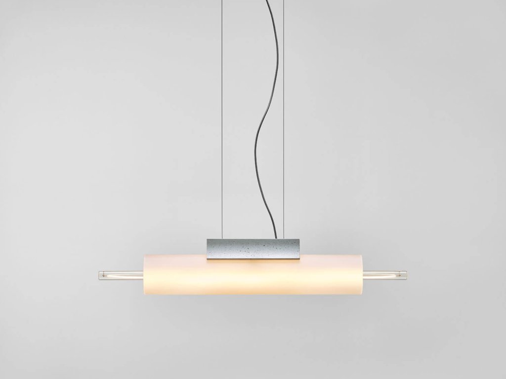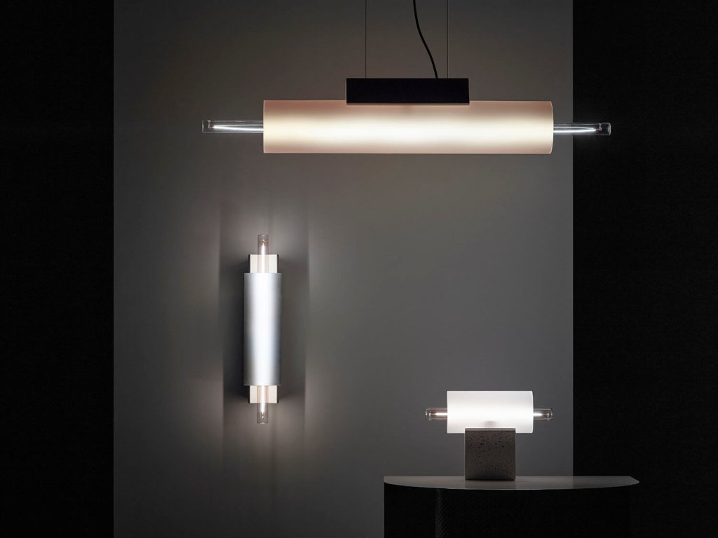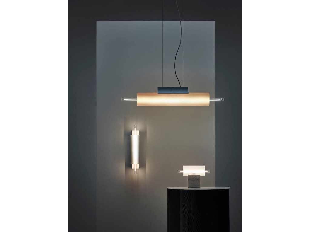 - Kolekce Overlay zahrnuje horizontální závěsné varianty, stolní svítidla a nástěnná svítidla