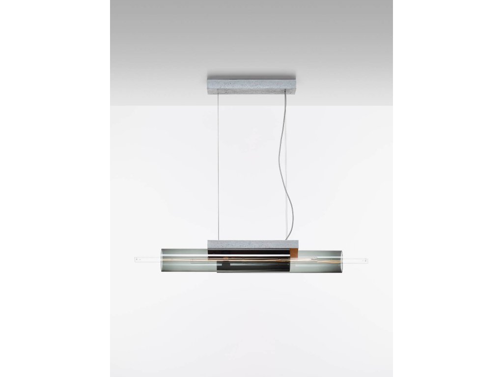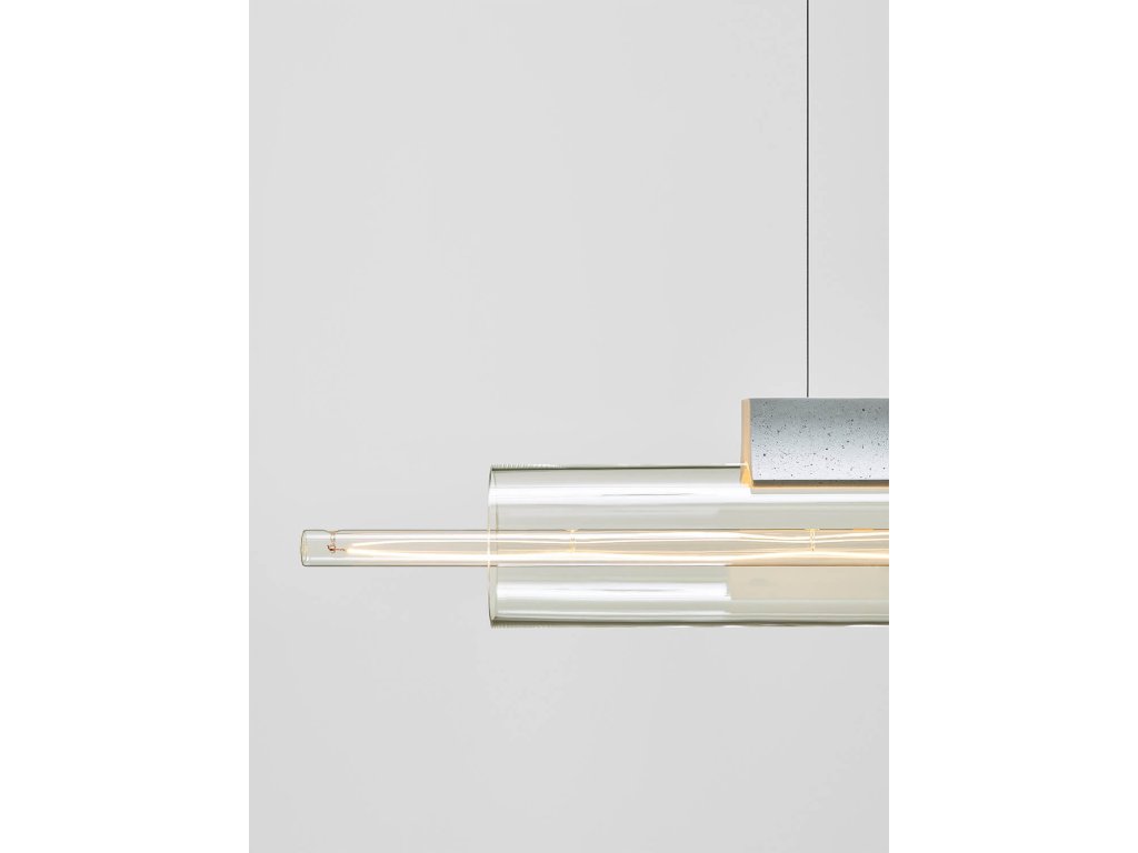Materiál: ručně foukané sklo, barvené ve hmotě, beton