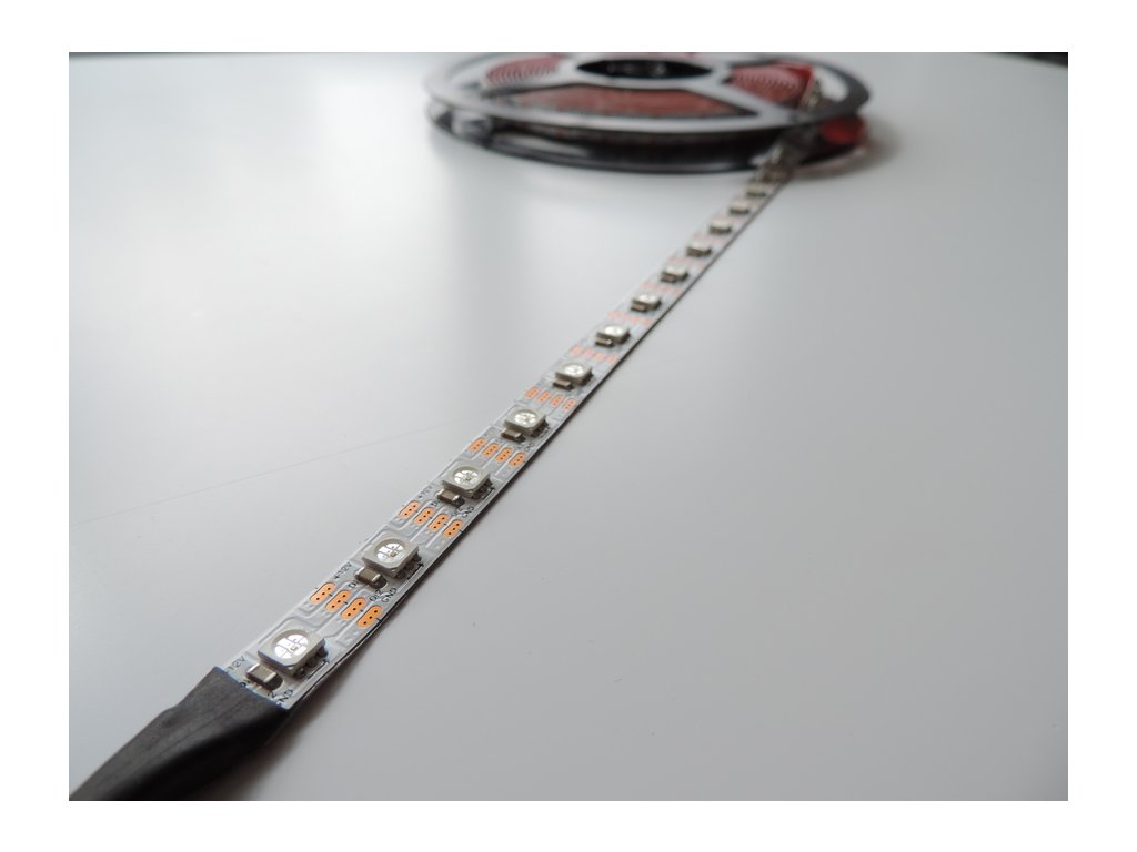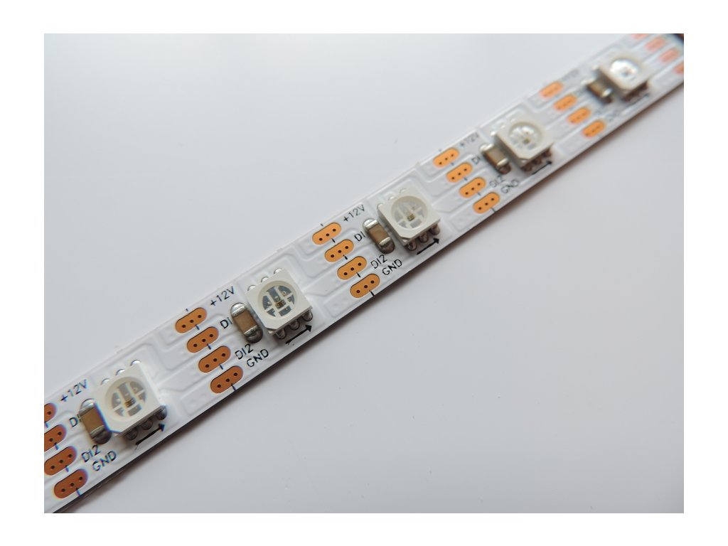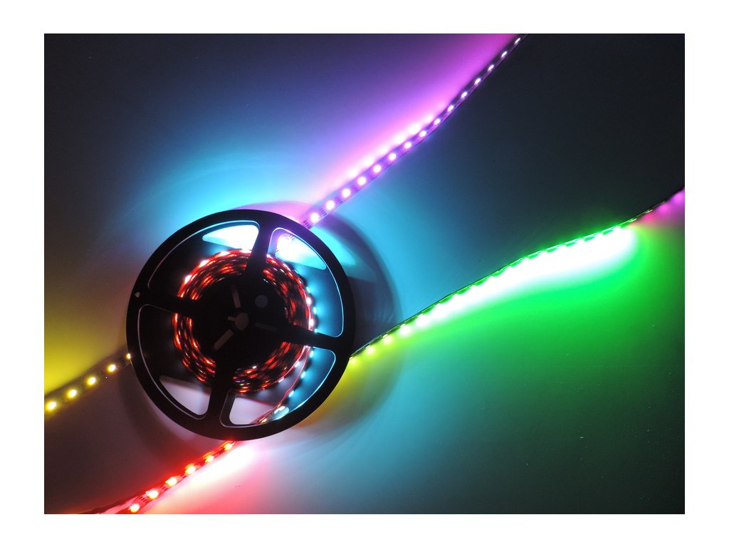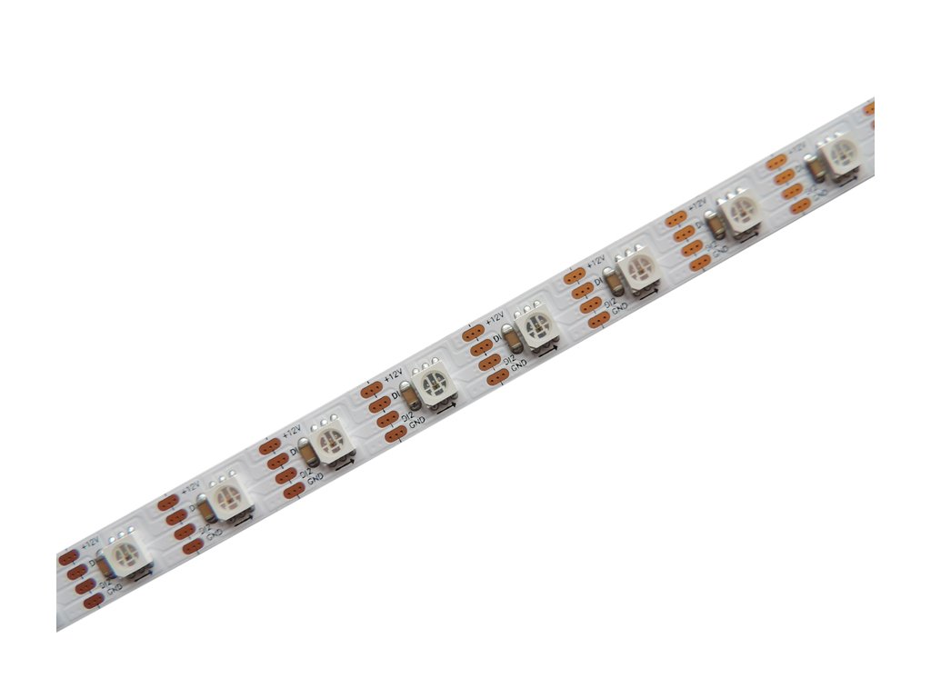LED pásek s digitálně adresovatelnými LED čipy. Díky digitální komunikaci si můžete každý LED čip rozsvítit jinou barvnou a docílit tak barevných efektů. Příkon LED pásku je 8W/m a je určen pro 12V napájecí zdroje. Pásek má 60 čipů na 1m a lze je adresovat samopstatně. Typ instalovaného čipu je KL1809-6P ( S3636 RGB IC LED ). LED pásek je řízen pomocí SPI komunikace, vhodný ovladač naleznete v příslušenství.