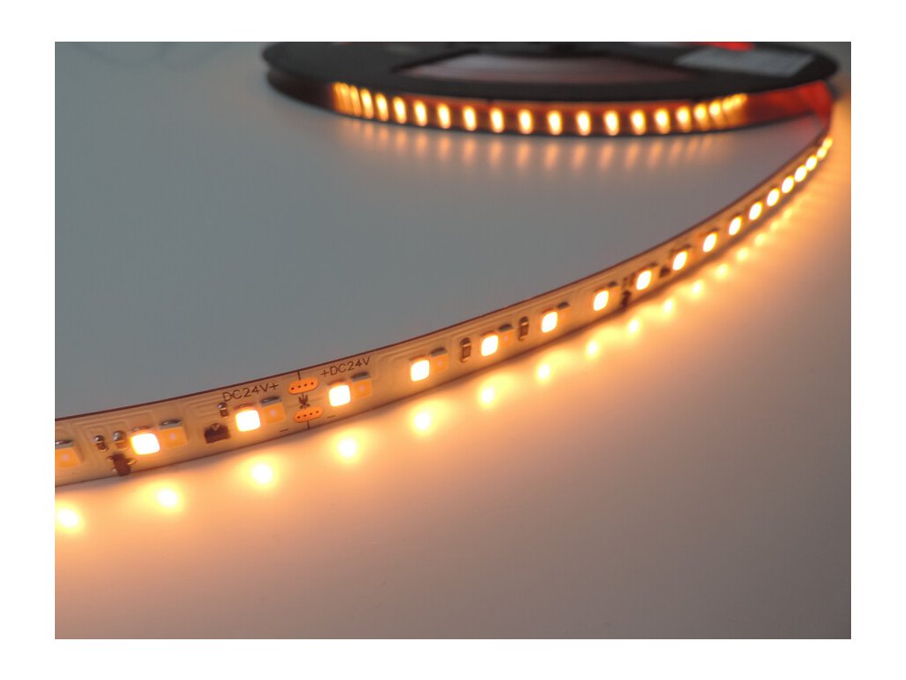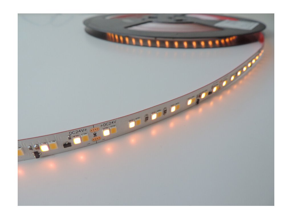 LED pásek s dvojicí čipů 2835 s chromatičností 2200K a 4300K. Při plném výkonu svítí naplno oba čipy součet barev odpovídá cca 3200K. Při stmívání pásku pomocí stmívače (PWM) dochází nejprve ke stmívání čipu 4300K a až poté čipu s chromatičností 2200K. Pásek tedy vytváří iluzi stmívání halogenové žárovky.