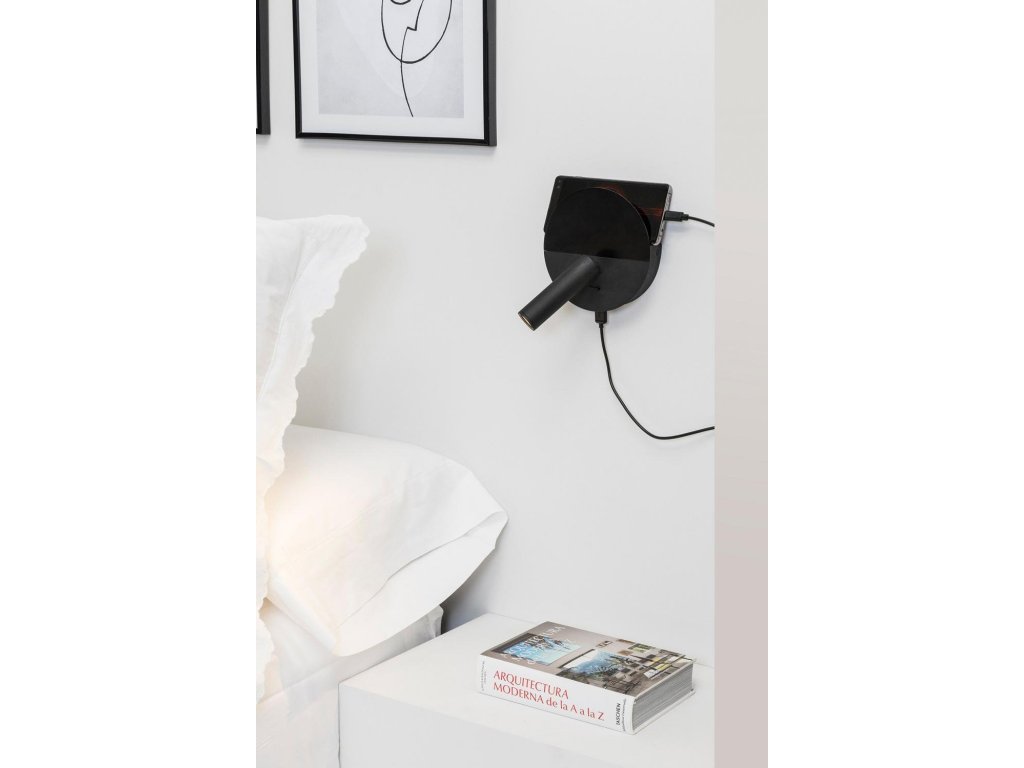 DUAS nástěnná lampa na čtení, černá, s USB - FARO
