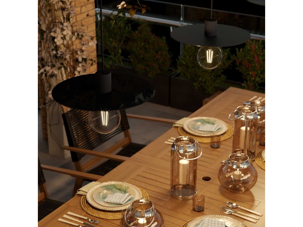 Hledáte venkovní osvětlení na verandu? Chcete ve vaší zahradě vytvořit příjemnou atmosféru pomocí osvětlení, které odráží váš osobitý styl? Hledáte osvětlení nad venkovní taneční parket? Díky světelnému systému EIVA můžete konečně změnit vzhled svých venkovních prostorů a spolehnout se na bezpečnost produktu vyrobeného v Itálii, který je zcela vodotěsný. Tato závěsná lampa, doplněná o stínidlo, je vybavená silikonovou objímkou EIVA a stropním baldachýnem: velmi kvalitní komponenty s krytím IP65, odolné proti vodě a dešti. Všechny komponenty jsou navrženy a patentovány společností Creative-Cables. Díky základným liniím a minimalistickému designu velkého stínidla ve tvaru LP desky vyrobeného z materiálu Dibond můžete vytvořit moderní styl v jakémkoliv prostředí.