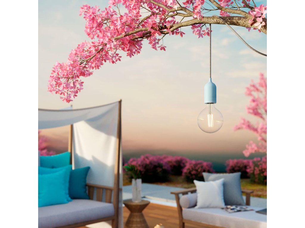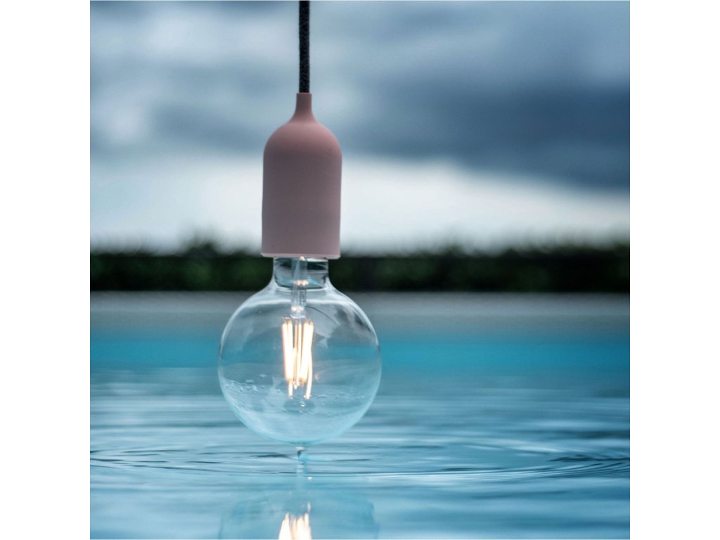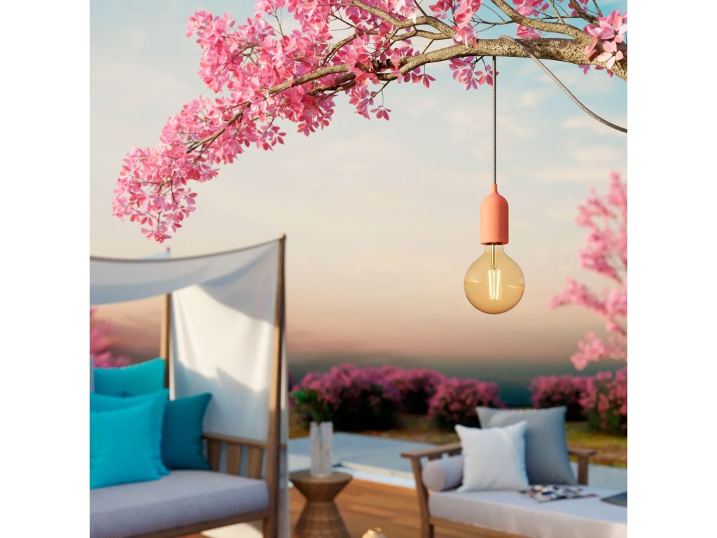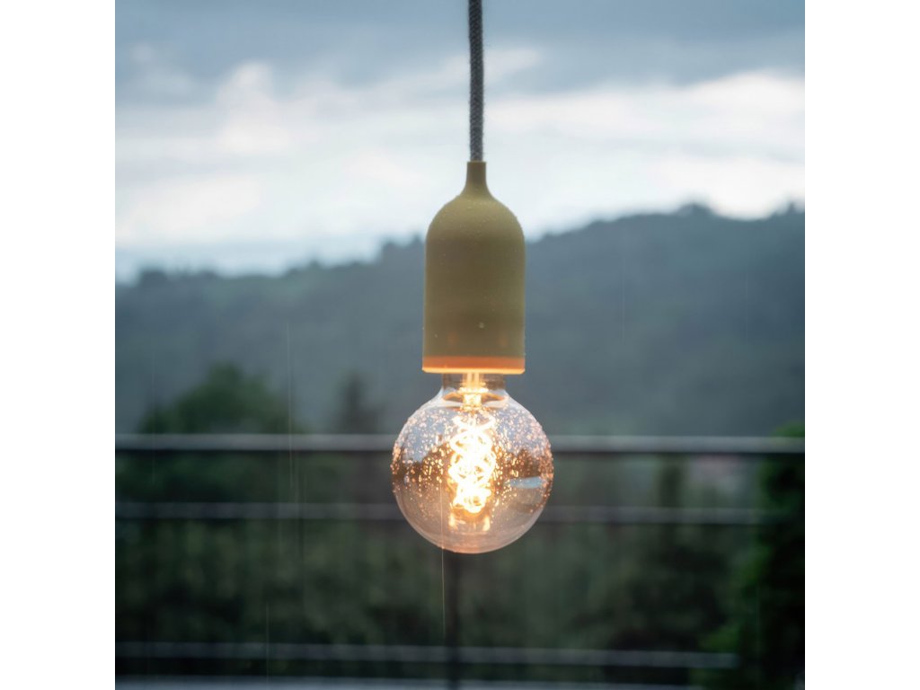 EIVA pastel závěsná lampa IP65 do exteriéru s textilním kabelem, decentralizerem, silikonovým baldachýnem a objímkou, voděodolná