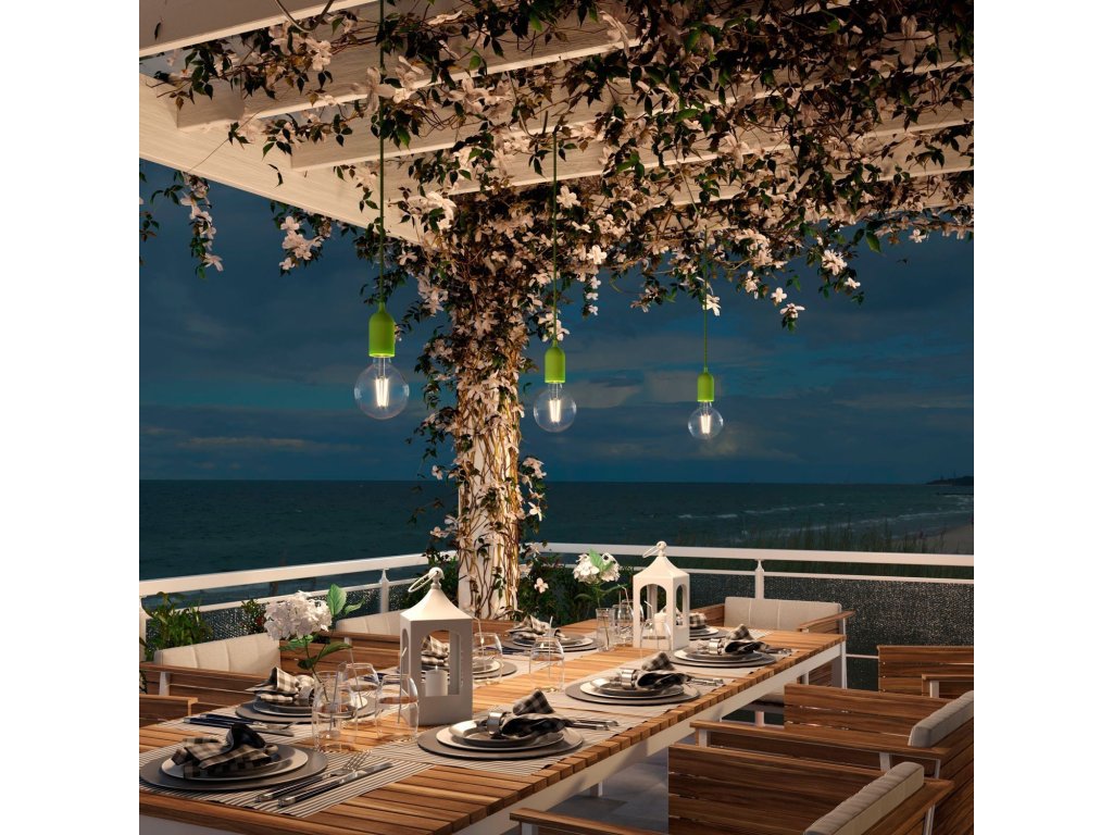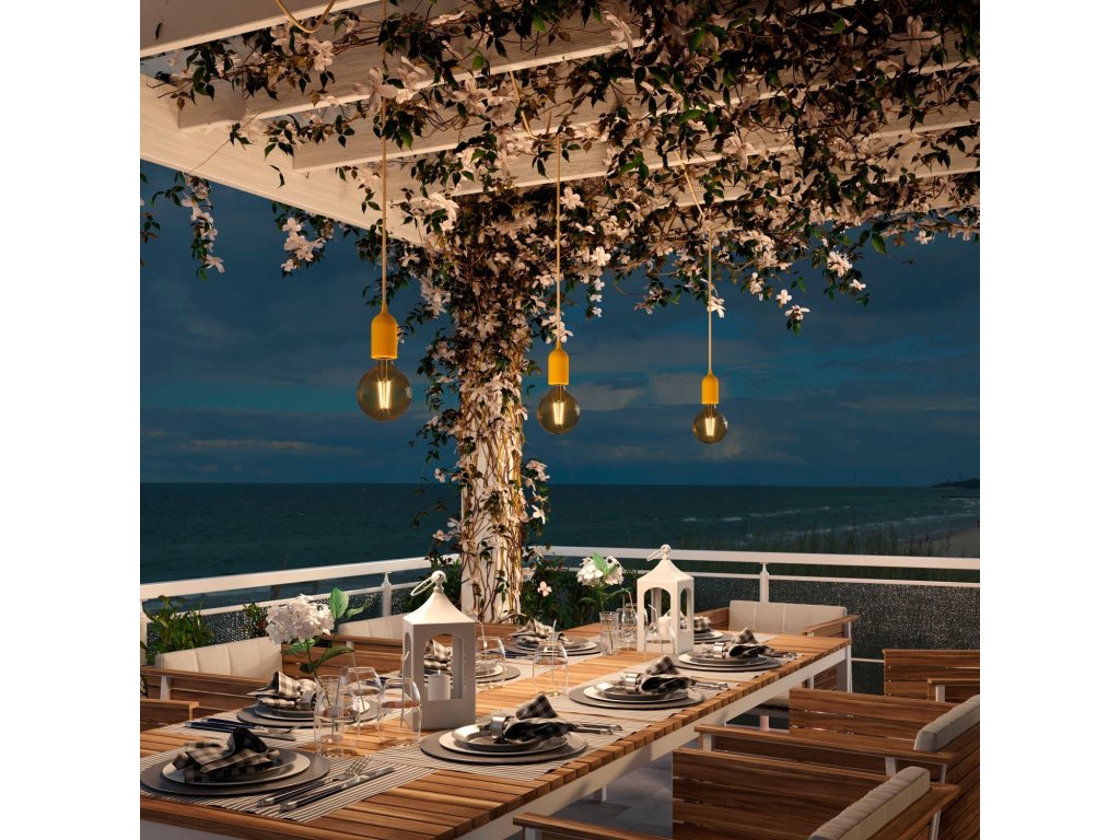 Barevná závěsná lampa pro všechny, kteří chtějí dát svým vnějším prostorám nové světlo! Se závěsnými svítidly EIVA můžete konečně změnit vzhled svých vnějších prostor s bezpečnými produkty, které jsou voděodolné a vyrobené v Itálii. Tato jednoduchá závěsná lampa, která se skládá z objímky a stropního baldachýnu EIVA - vysoce kvalitní komponenty s krytím IP65, odolné proti vodě a dešti, kompletně navržené a patentované společností Creative-Cables.