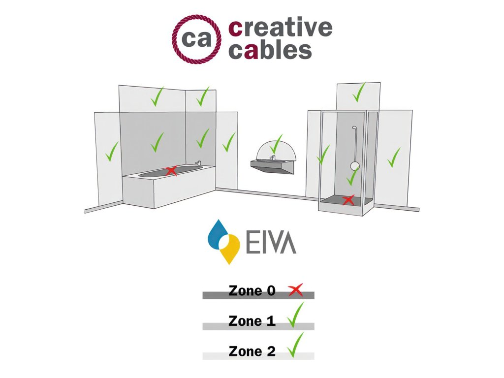 Fermaluce EIVA ELEGANT je nástěnné svítidlo s objímkou EIVA a stropním baldachýnem: vysoce kvalitní komponenty vyrobené v Itálii s krytím IP65, odolné proti vodě a dešti, kompletně navržené a patentované společností Creative-Cables. Díky krytí IP65 je Fermaluce EIVA ELEGANT ideální nejen pro ozdobení zahrady nebo terasy, ale také jako řešení osvětlení do koupelny, aniž byste se museli obávat postříkání vodou! Když namontujete tuto nástěnnou lampu nad nebo vedle zrcadel v koupelně, doplníte ji nejenom o funkční světlo, ale také můžete vytvořit příjemnou atmosféru. Měkký silikonový kryt je voděodolný a je k dispozici v řadě barev EIVA ELEGANT - vyberte si ten, který nejlépe odpovídá interiéru, který chcete osvětlit!