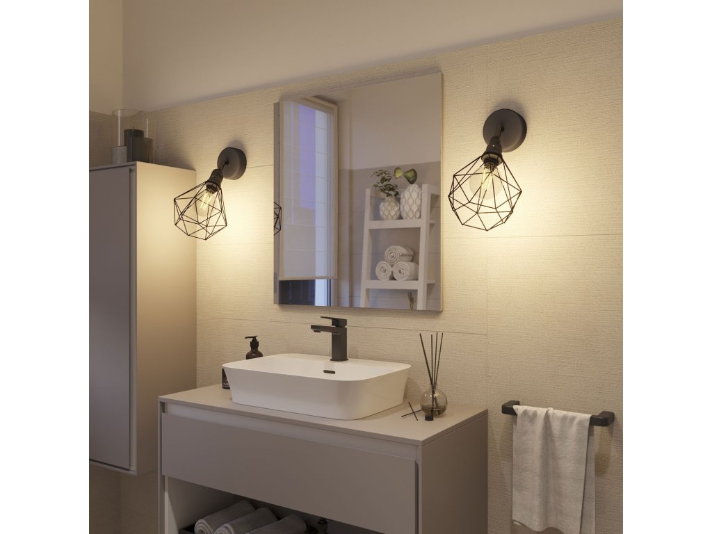 Fermaluce EIVA se stínidlem Diamant je vodotěsné nástěnné svítidlo určené pro ty, kteří nechtějí dělat kompromisy ohledně moderního vzhledu i pro své venkovní prostory. Základní linie stínidlového rámu Diamant odhalují objímku EIVA: první objímku pro žárovky s krytím IP65 na světě, která je schopná zcela bezpečně odolávat dešti a bouřím. Lampa je vybavena nastavitelným kloubem, který umožňuje naklonění až o 90° a otáčení o 315°, což umožňuje nasměrovat světlo podle vašich potřeb. Díky krytí IP65 bude toto nástěnné svítidlo také perfektní pro osvětlení koupelny v naprostém bezpečí. Dokonalé funkční osvětlení, které neohrožuje estetiku!