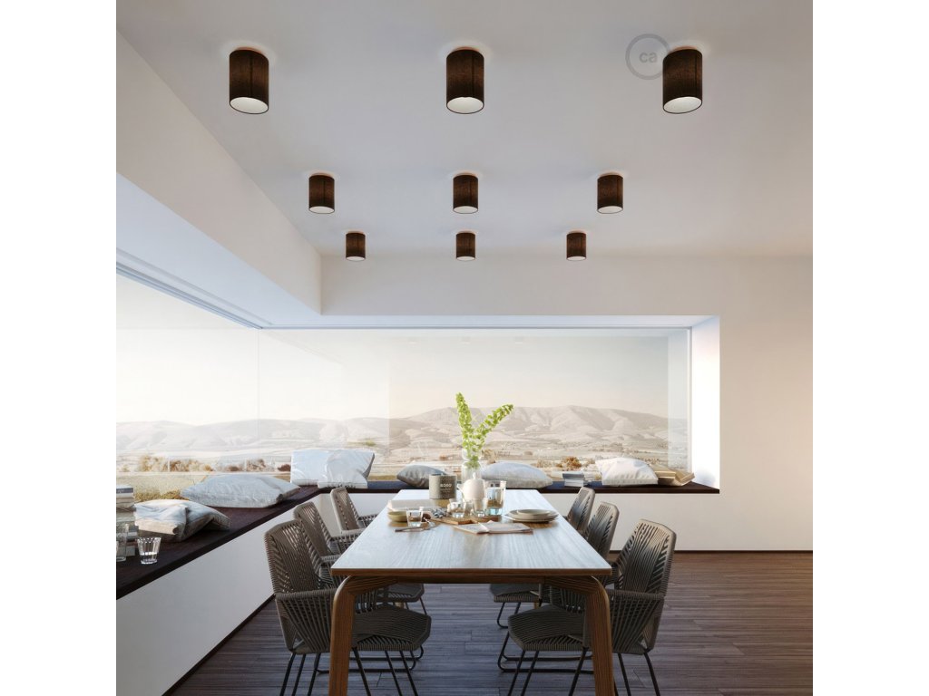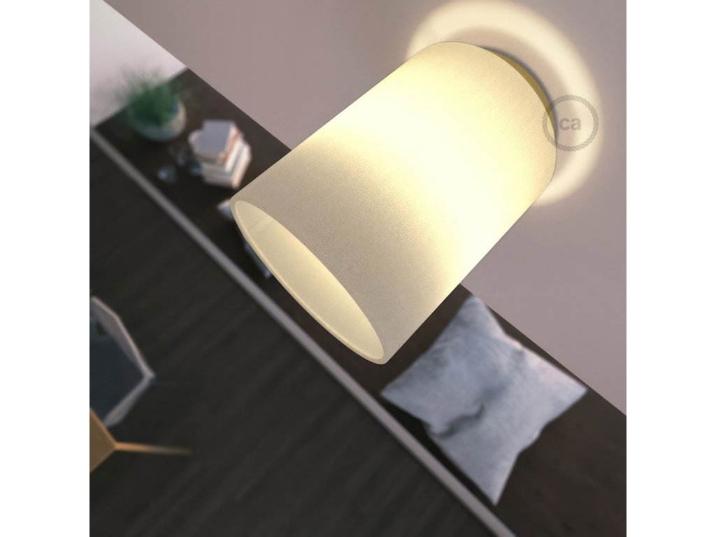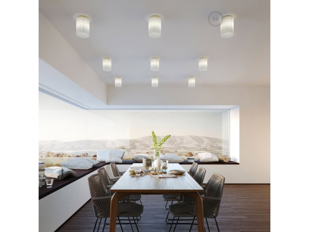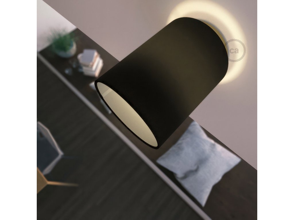 Nejelegantnější verze kovového svítidla Fermaluce Glam kombinuje praktické a stylové bodové svítidlo s válcovým stínidlem a vytváří krásné a originální nástěnné nebo stropní světlo. Válcové stínidlo je vyrobené v Itálii specializovanou řemeslnou dílnou. Vyberte si z dostupných pastelových odstínů tohoto textilního stínidla, aby co nejlépe odpovídaly stylu vašeho interiéru.