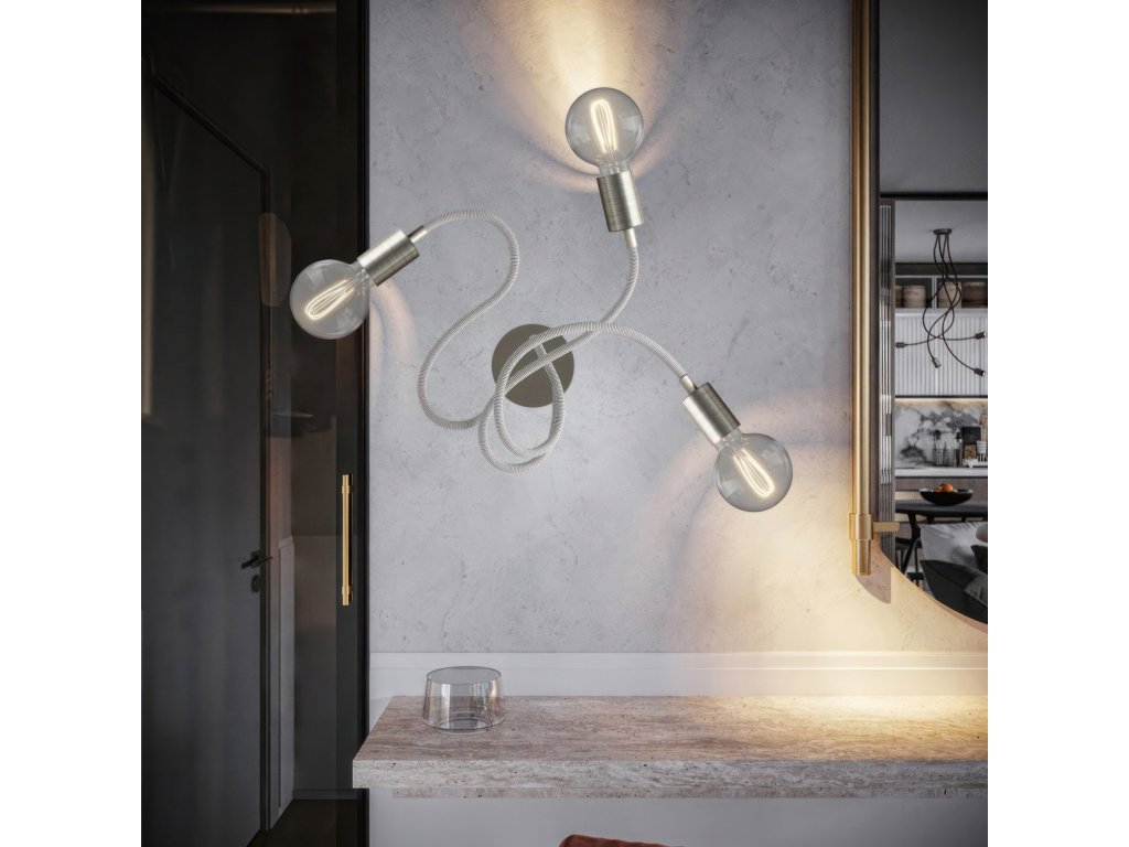 Díky Flex 60cm, který je nastavitelný a flexibilní, budete moci osvětlit své prostory stropním svítidlem, které poskytuje rozptýlené světlo. Zvolte si povrchovou úpravu, která se Vám nejvíc líbí a zda si přejete lustr již se žárovkou velikosti G95 nebo bez ní. Baldachýn, objímka a žárovka LED G95 jsou k dispozici ve 3 různých kombinacích Flex. Chcete-li zachovat tvar Vaší lampy,ohněte celý kabel Flex.