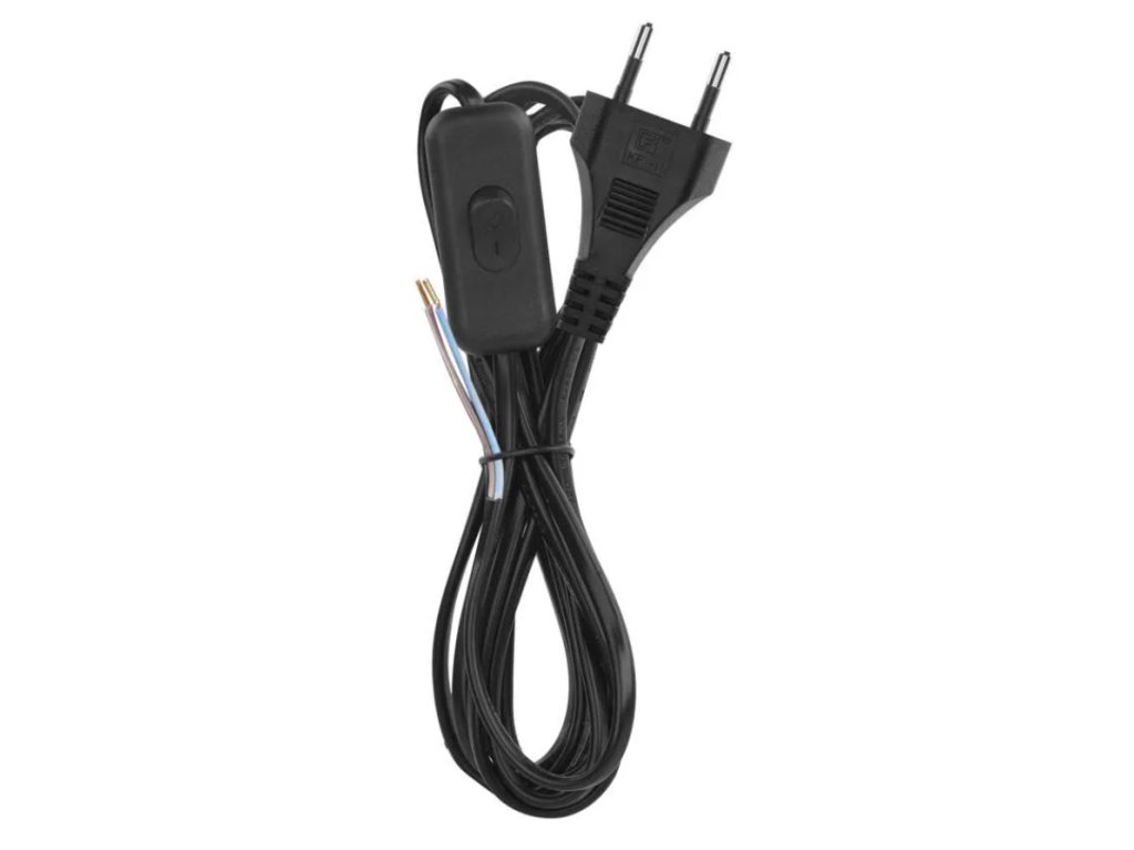 Flexo šňůra PVC 2× 0,75mm2 s vypínačem, černá