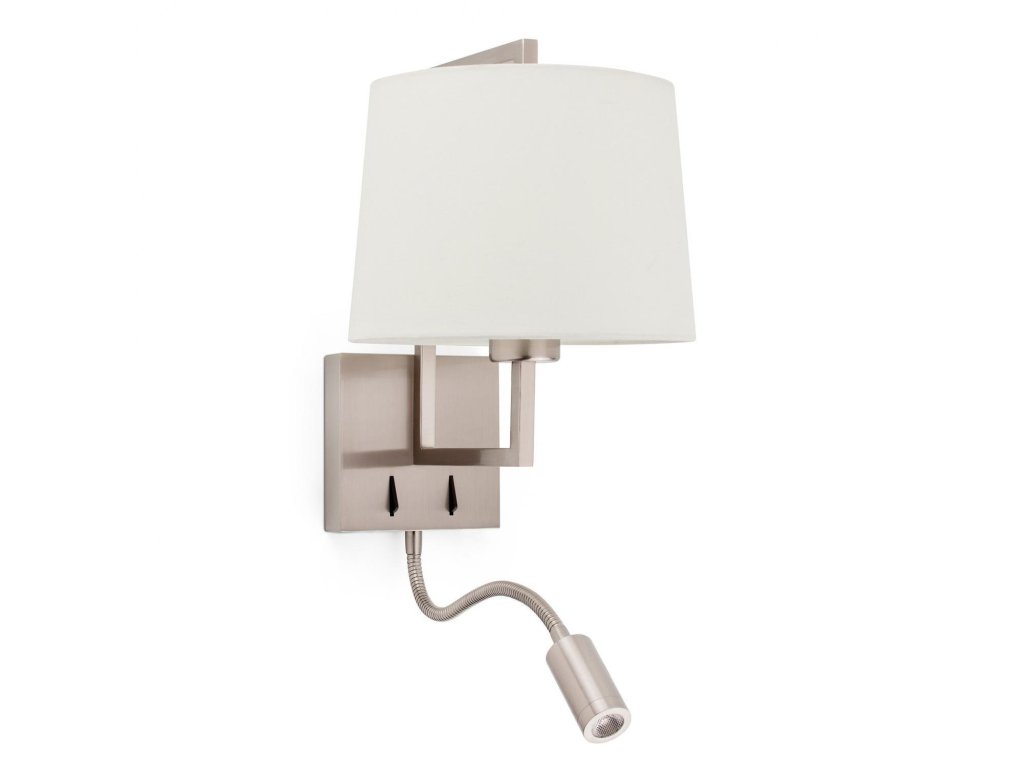 FRAME nástěnná lampa, nikl/béžová, se čtecí lampičkou - FARO