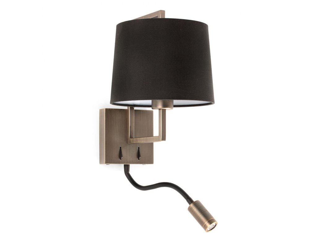 FRAME nástěnná lampa, starozlatá/černá, se čtecí lampičkou - FARO