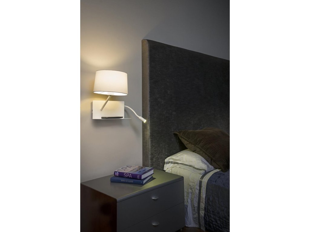 HANDY nástěnná lampa, bílá, se čtecí LED lampičkou vlevo - FARO