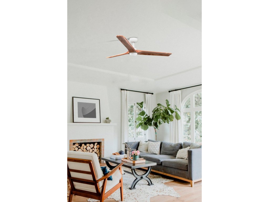 HEYWOOD L LED stropní ventilátor, bílá/světlé dřevo s DC motorem - FARO
