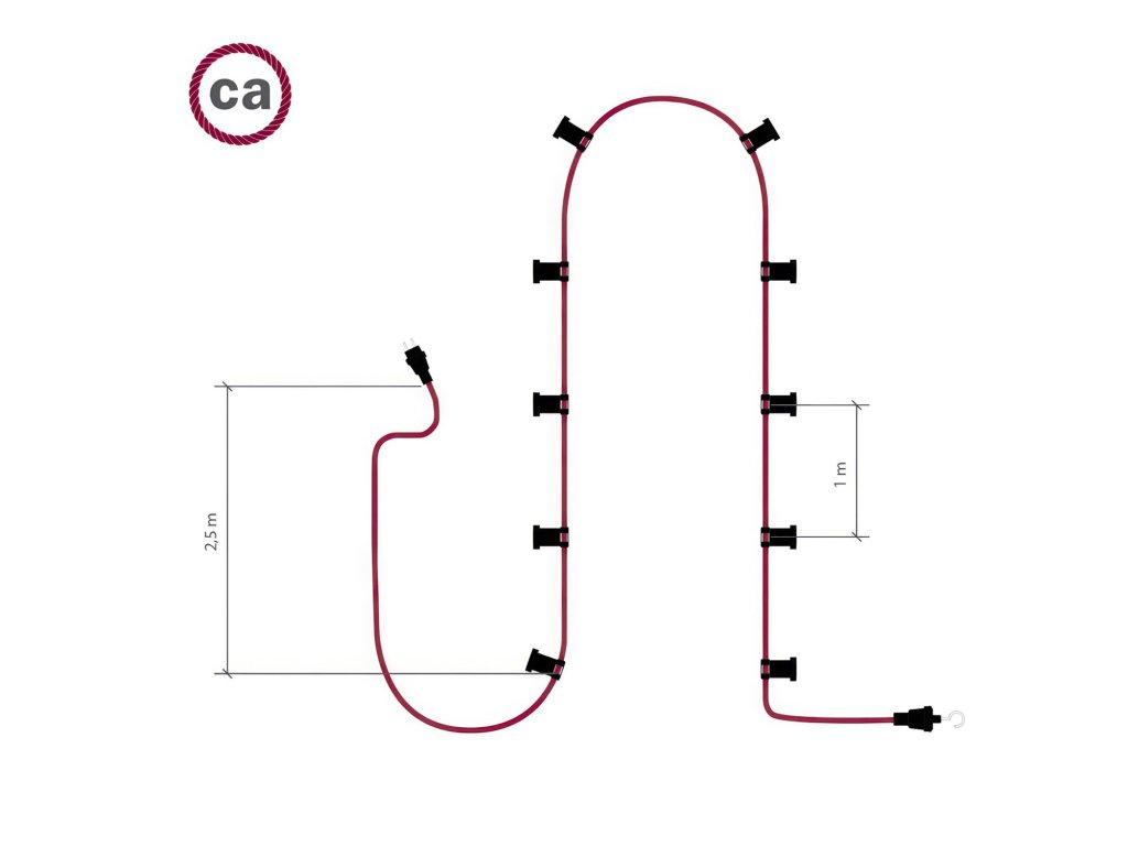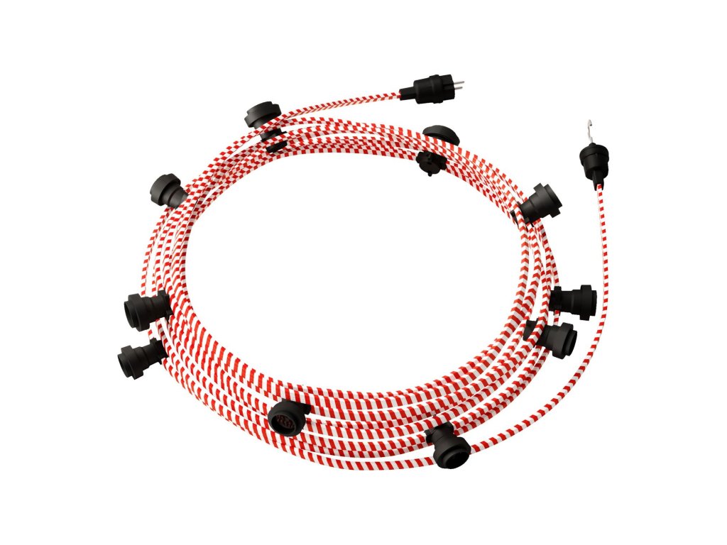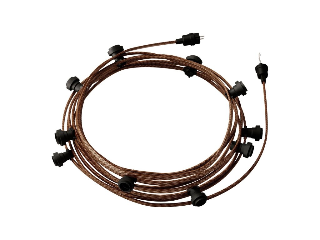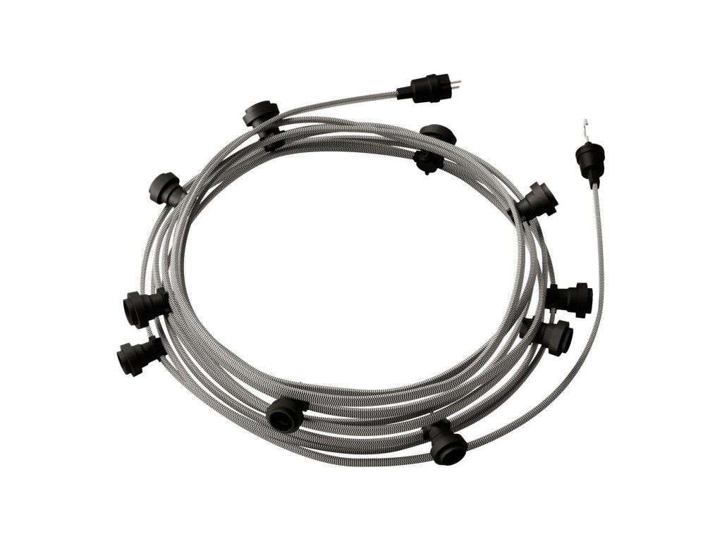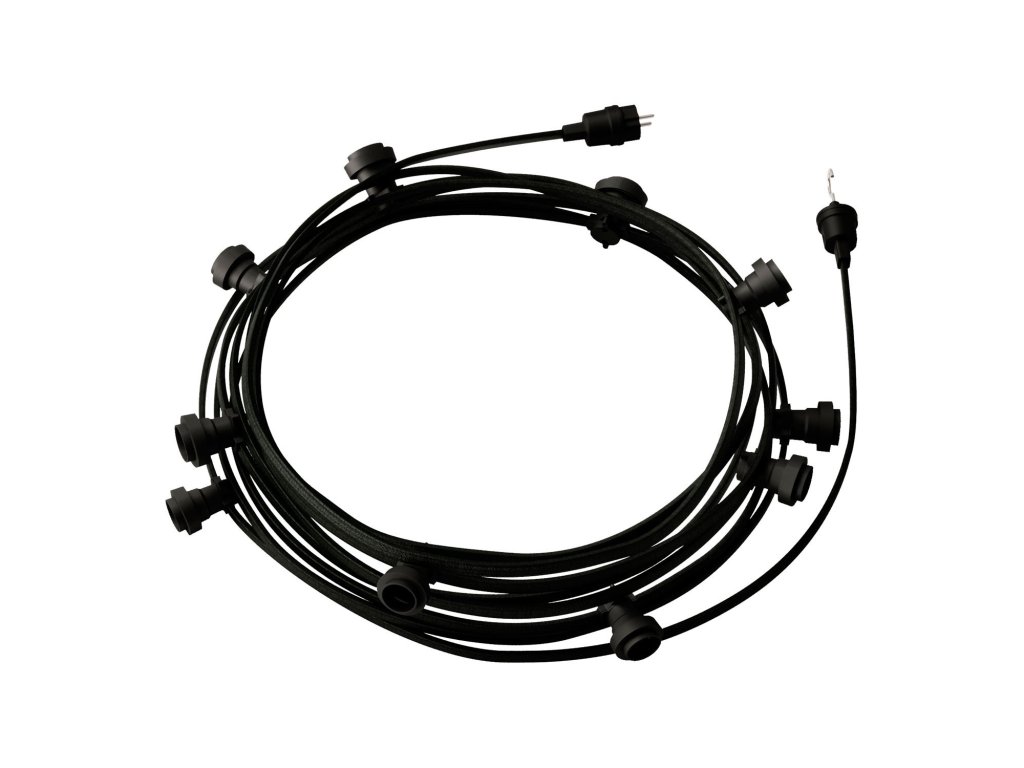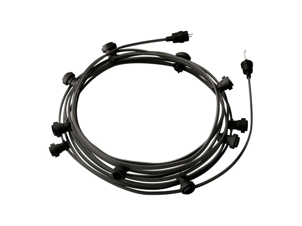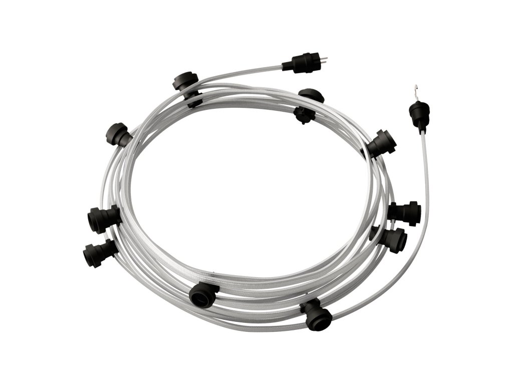Systém Lumet je úžasný způsob, jak rozjasnit zahradu nebo altán. Nádherně vynikne i v interiéru u slavnostního setkání. S nádhernými barvami textilních kabelů objevíte vše, co potřebujete, abyste na Vaší společenské události snadno vytvořili příjemnou atmosféru. Hotový světelný řetěz je poskládaný ze Schuko zástrčky, háčku a 10 kusů bílých objímek E27. Háček Vám umožní připevnit svítidlo kam potřebujete, může být veden křížem přes místnost nebo naopak podél místnosti.
