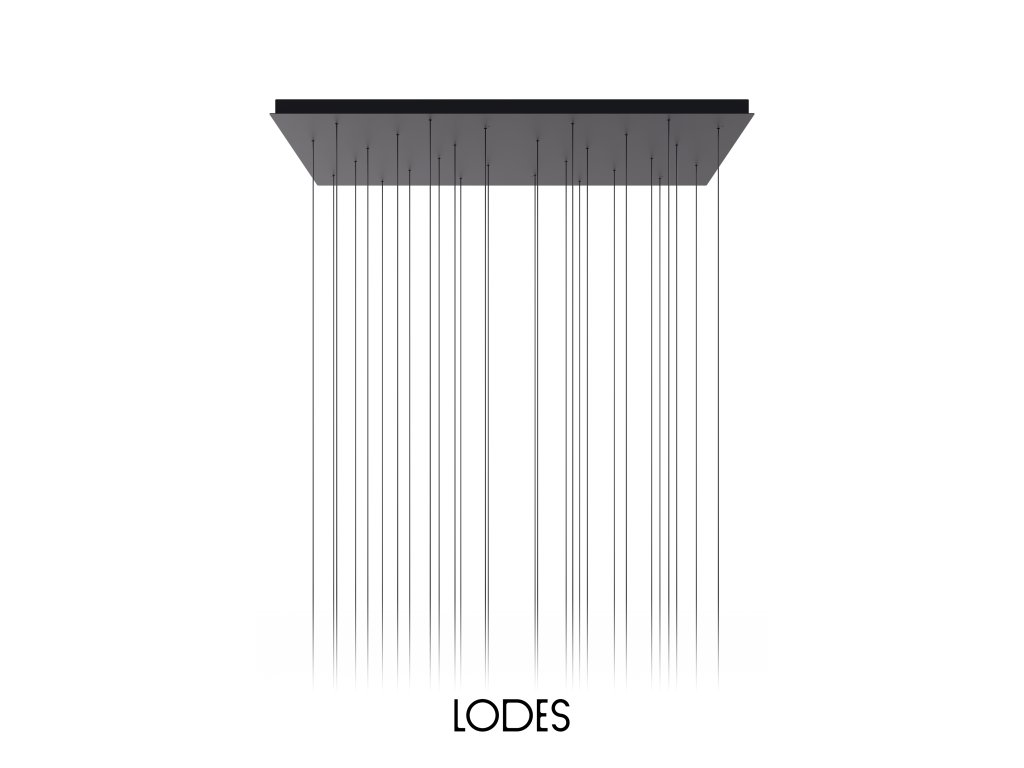 Elegantní hranatá montura je závěsný systém, který zároveň funguje i jako dekorativní prvek, umožňující zavěšení 28 kusů svítidel.