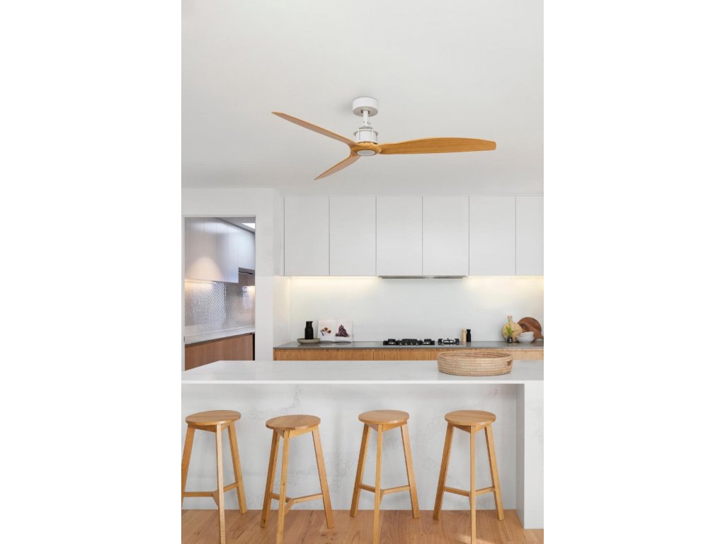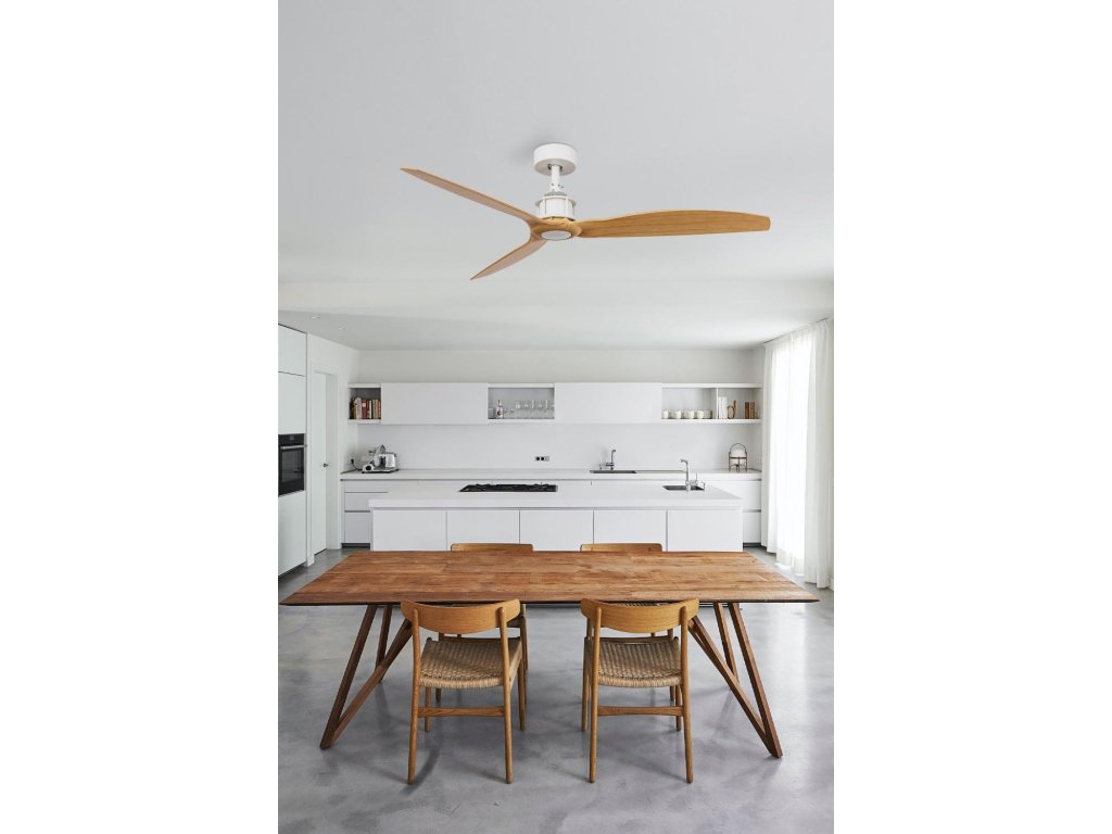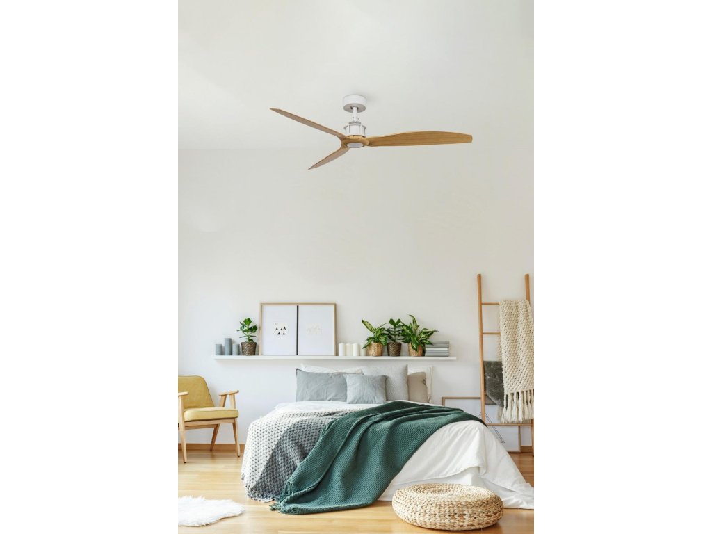 JUST FAN M stropní ventilátor, bílá/světlé dřevo s DC motorem - FARO