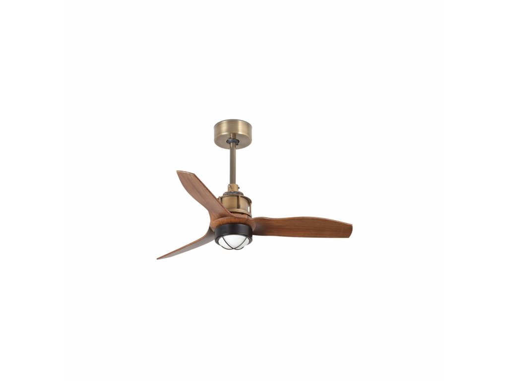 JUST FAN XS LED, starozlatá/dřevo, stropní ventilátor 81cm - FARO