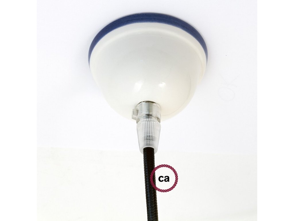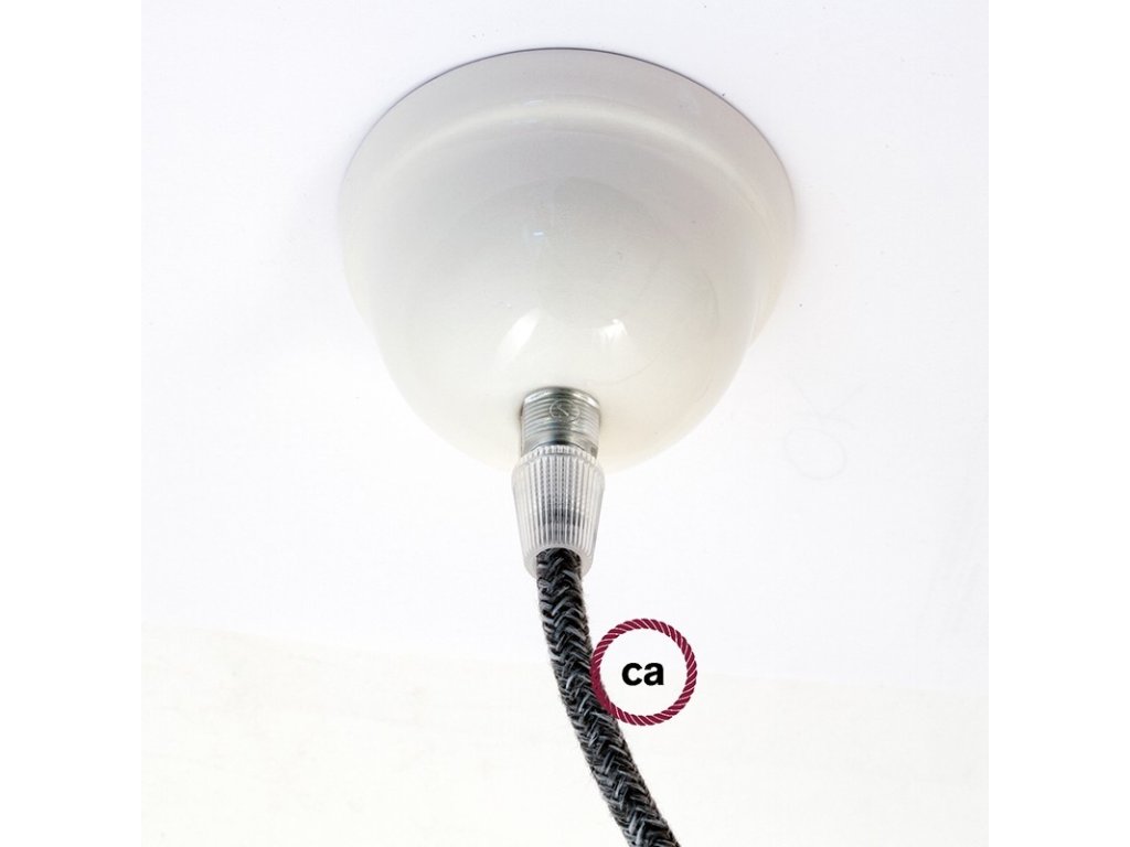 UPOZORNĚNÍ: Elektrické svorky pro zapojení stropního baldachýnu k elektrickému vedení NENÍ SOUČÁSTÍ balení, ale lze je zakoupit samostatně. Každý baldachýn je dodělaný a smaltovaný ručně a díky drobným rozdílům způsobeným výrobním procesem je jedinečný. Malý keramický stropní baldachýn v sadě obsahuje: 1 keramický baldachýn Ø 75 mm, 1 dutý závitový šroub, 1 průhledná kabelová průchodka z termoplastu, 1 stropní háček se závitem.