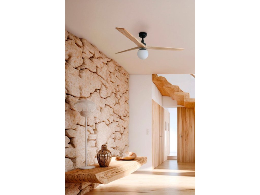 KLIM M stropní ventilátor, černá/světlý dub DC E27 - FARO