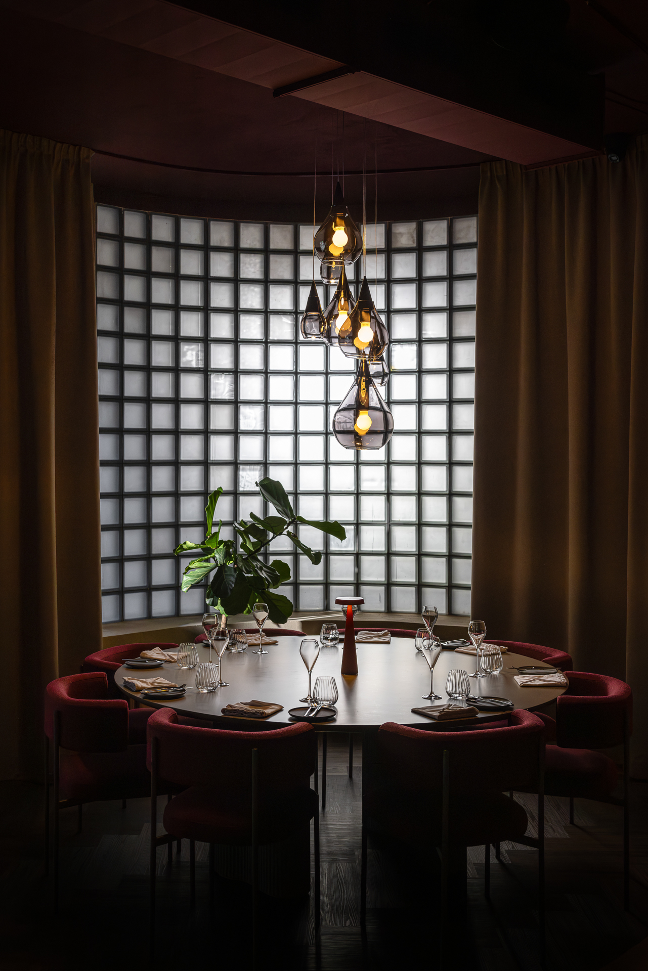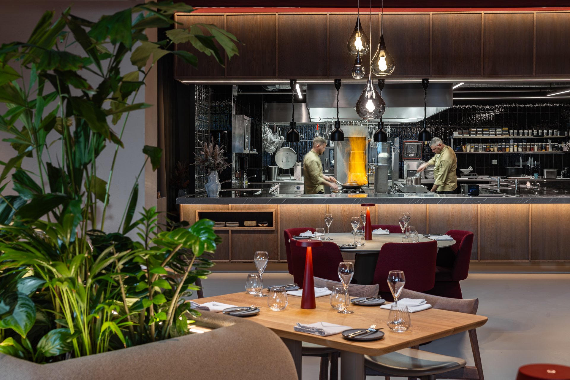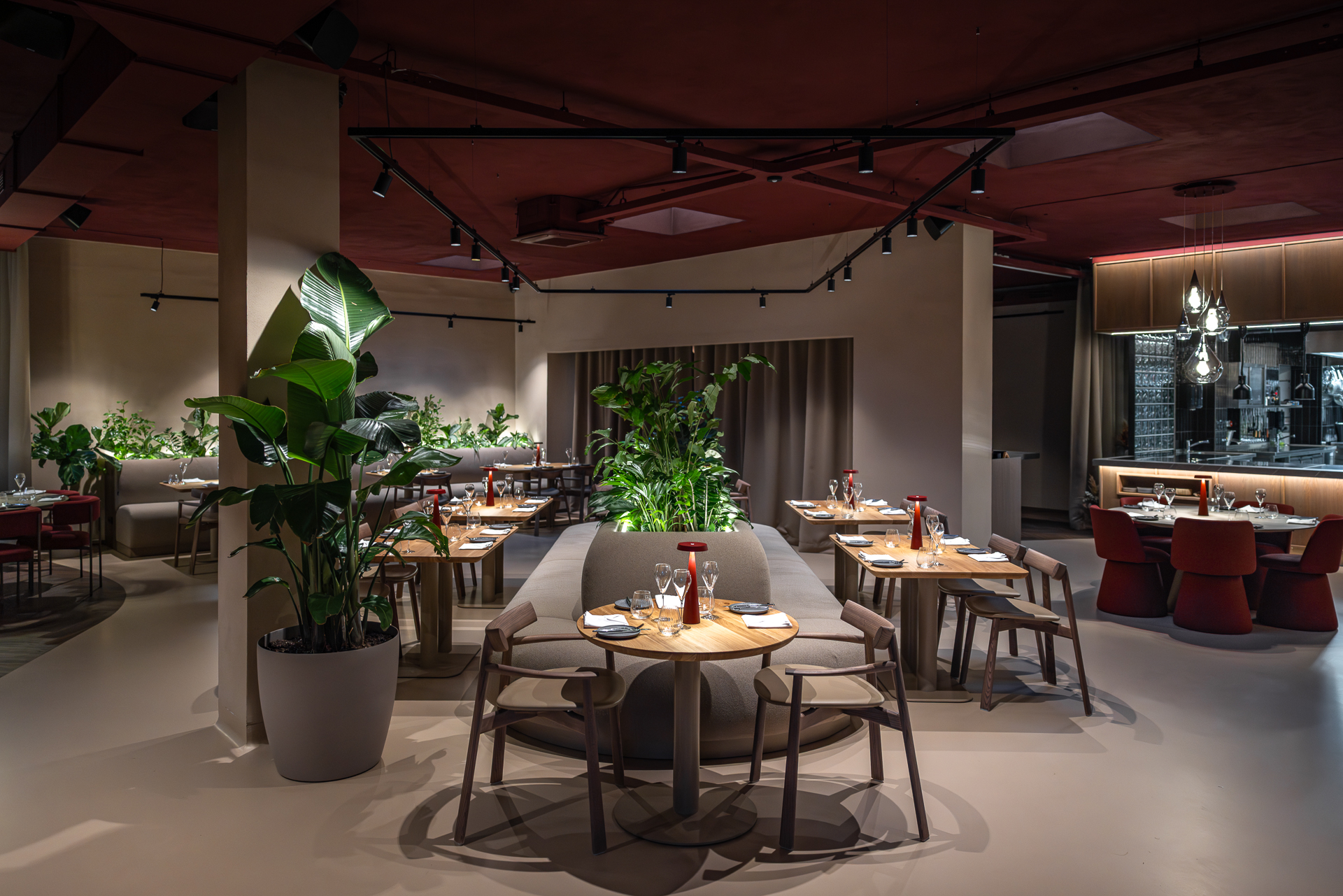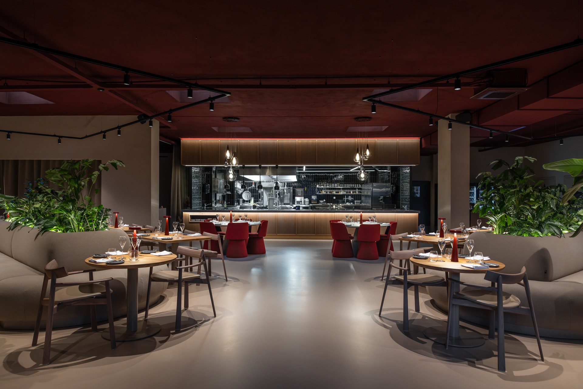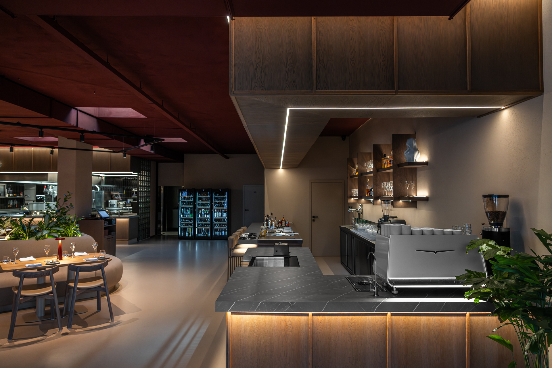 Realizace moderní asijské restaurace v Brně. Příjemné ambientní osvětlení doplňují tracklightové systémy a závěsná skleněná svítidla značky Sikrea. Zapuštěné LED pásky osvětlují otevřenou kuchyni, která je zážitkem pro zákazníky. Návrh interiéru: LINO design.