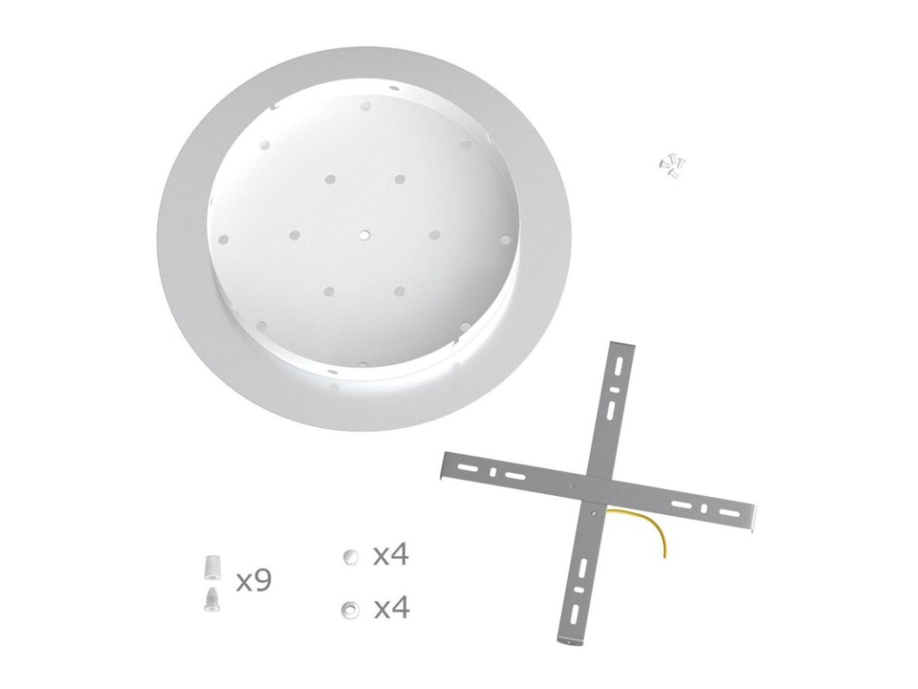 Kruhový stropní baldachýn z edice Rose-One System představuje exkluzivní řešení z dílny Creative-Cables, díky kterému budou Vaše svítidla vypadat ještě dokonaleji. Tento kruhový stropní baldachýn Rose-One System s průměrem 400 mm a 9 otvory s rozmístěním ve tvaru X je sestaven z menšího kovového stropního baldachýnu, na který se pomocí kabelových průchodek připevní kruhová plotna s barevným, nebo obrazovým motivem s průměrem 400 mm.