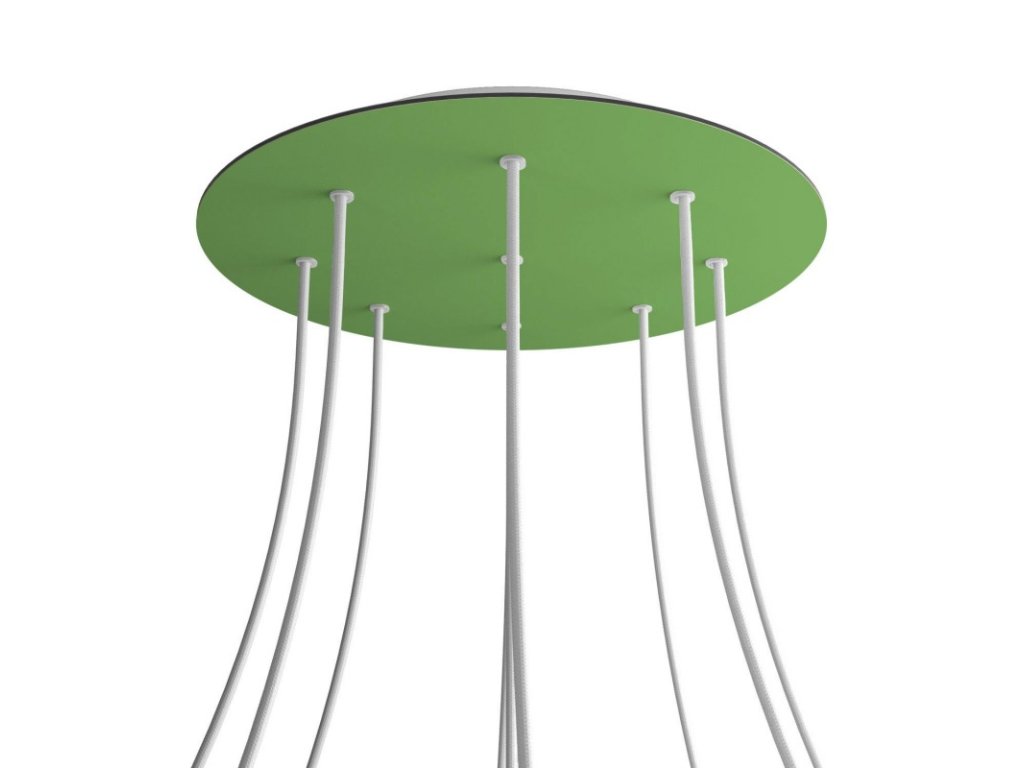Kruhový stropní baldachýn z edice Rose-One System představuje exkluzivní řešení z dílny Creative-Cables, díky kterému budou Vaše svítidla vypadat ještě dokonaleji. Tento kruhový stropní baldachýn Rose-One System s průměrem 400 mm a 9 otvory je sestaven z menšího kovového stropního baldachýnu, na který se pomocí kabelových průchodek připevní kruhová plotna s barevným, nebo obrazovým motivem s průměrem 400 mm. Díky této jednoduché myšlence budete mít mnohem větší svobodu při realizaci vlastních světelných instalací. V nabídce si můžete vybrat hned z několika svěžích barevných motivů a vzorů, které jsme pro Vás připravili. Přejeme Vám mnoho zábavy! Kruhový stropní baldachýn Rose-One System s průměrem 400 mm.