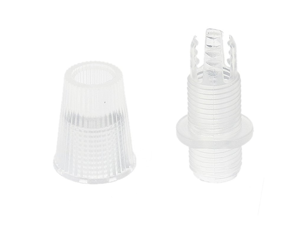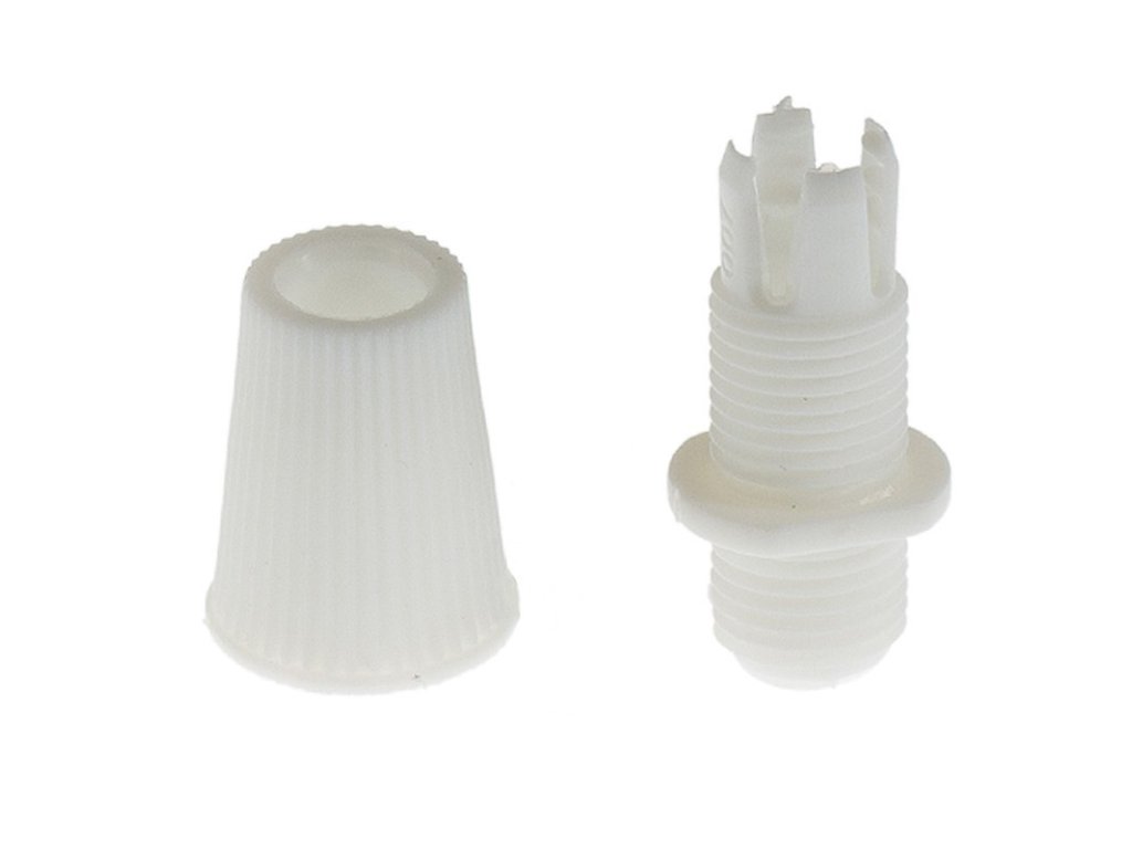 Kabelová průchodka k upevnění textilních elektrických kabelů k objímkám a ke stropnímu baldachýnu jakéhokoliv druhu a materiálu. Udělejte svůj stropní baldachýn a objímku jedinečnými díky sladění této plastové kuželové kabelové průchodky s komponenty podle vašeho výběru. Vyberte si z nabídky výhodných balení a získejte tu nejlepší cenu!