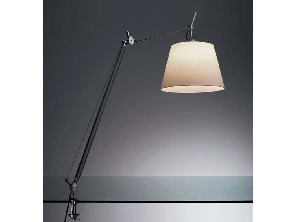 LED Stolní lampu Tolomeo Mega tvoří rameno uchycené pomocí propracovaného kloubního mechanismu a lanka, které umožňuje libovolné nastavení lampy a nasměrování světla tam, kde je potřeba. Lampa zároveň drží stabilní polohu, do které ji nastavíte. Stínidlo je nabízeno ve tří variantách, v černé barvě, hedvábí, pergamenový papír a také lze vybrat ze tří velikostí 32 cm, 36 cm a 42 cm. Rám je vyroben z hliníku v černé barvě nebo v barvě hliníku.