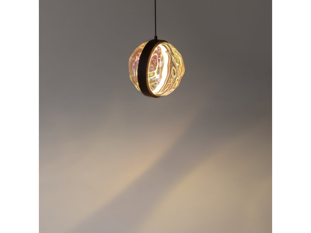 Krásné luxusní designové svítidlo od německé značky Maytoni ze série MISTERIO. Toto LED svítidlo má transparentní difuzor a černou konstrukci. Difuzor má nepravidelný kulatý tvar a skleněný povrch odráží duchové odlesky.