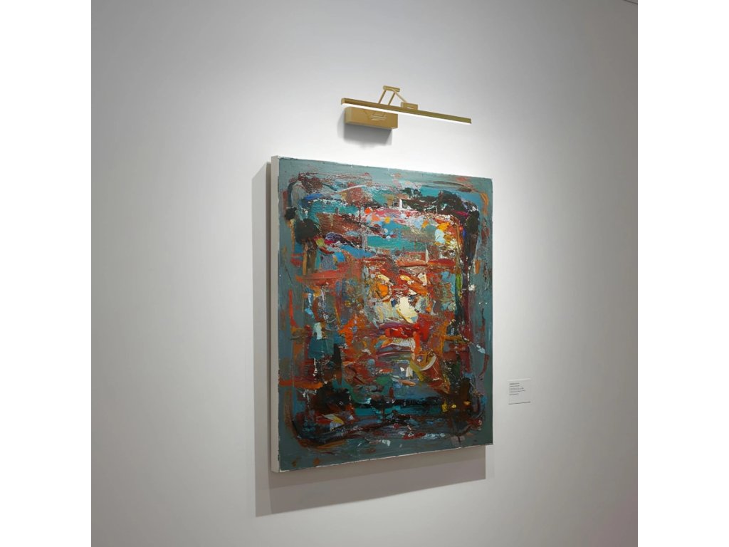 Nástěnné lineární LED svítidlo s dvojitým polohovatelným ramenem pro ideální nastavení při nasvětlení obrazů.