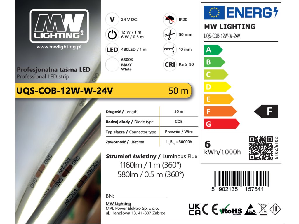 Kód produktu: UQS-COB-12W-W-24V-1M UQS-COB-12W-W-24V-50M Zvolte variantu