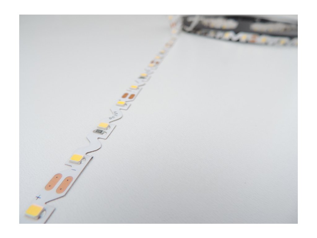 LED pásek řady PROFI s možností tvarování do strany. Pásek je možno při lepení tvarovat dle libosti čehož se dá vyžít příkladně při osvětlení nápisů reklamy, kdy je potřeba pásek nalepit na okraje písmen. Pásek má příkon 6W/m se světelným tokem 600lm/m. Pásek má šířku 6mm a je možno ho stříhat po modulech o délce 5cm. Pásek je vhodný pro dlouhodobé či trvalé svícení. Spodní strana obsahuje kvalitní 3M pásku řady 300LSE což zaručuje nadstandardní přilnavost i na mírně znečištěný povrch.